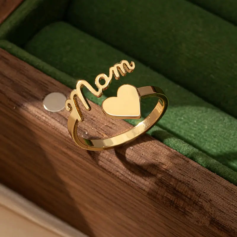 Adjustable Gold Mama Ring with Heart