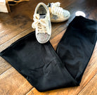 Get ready to rock your workout or lazy day in these super chic Athleisure Flare Pants! Made with athletic material, these black pants offer maximum comfort and style. Perfect for girls who love to mix fashion with function, these pants feature trendy flare legs. Ready to make a statement? These pants have got you covered (literally)!