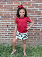 Bring on the tailgates, pep rallies, and game day fun in our Go Cocks Skort Set! The rich garnet top features a sweet, scalloped collar, while the coordinating skort shows off spirited bows and “Go Fight Win” pennants. Perfect for every little fan cheering on the Gamecocks in style!