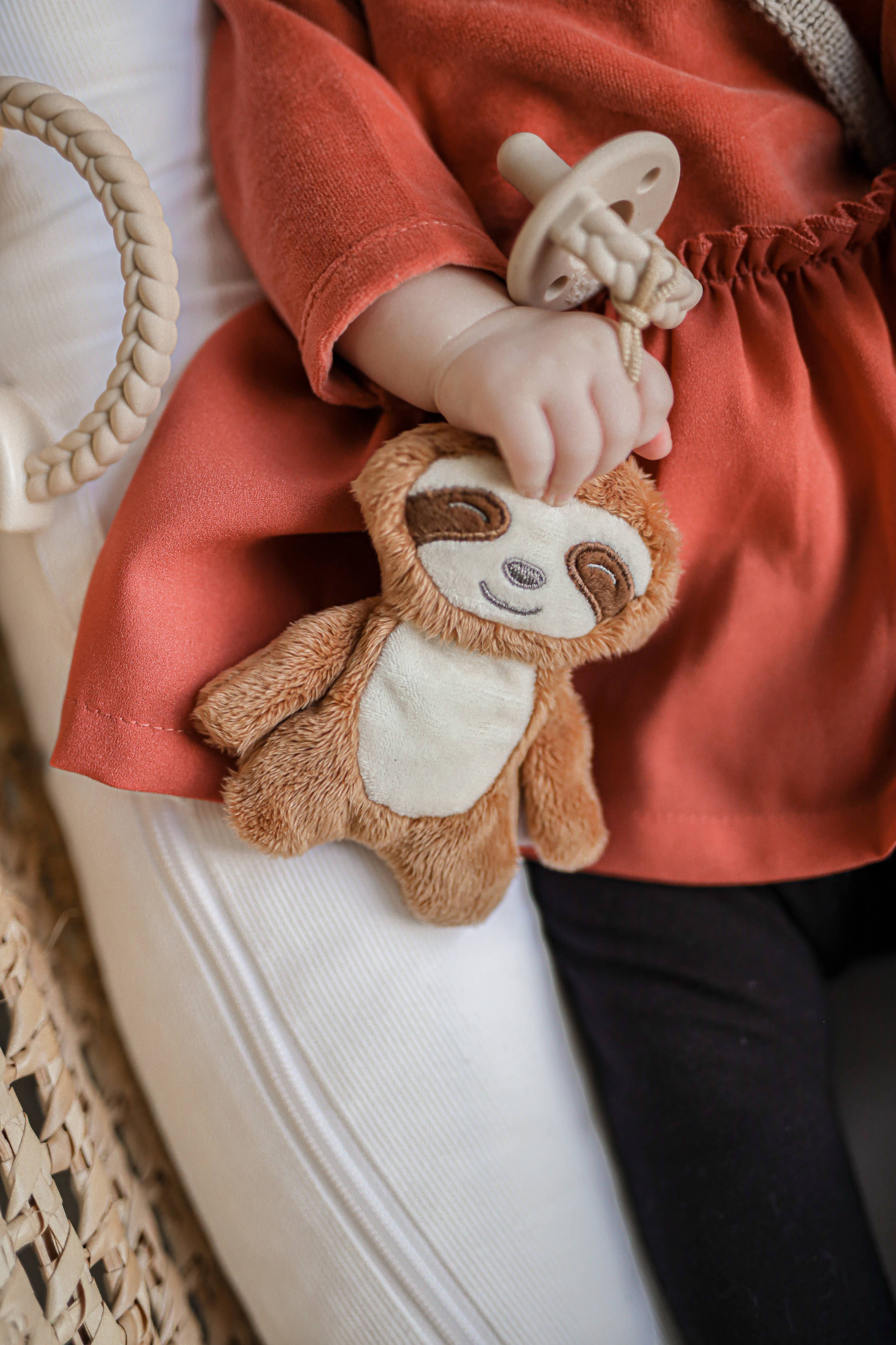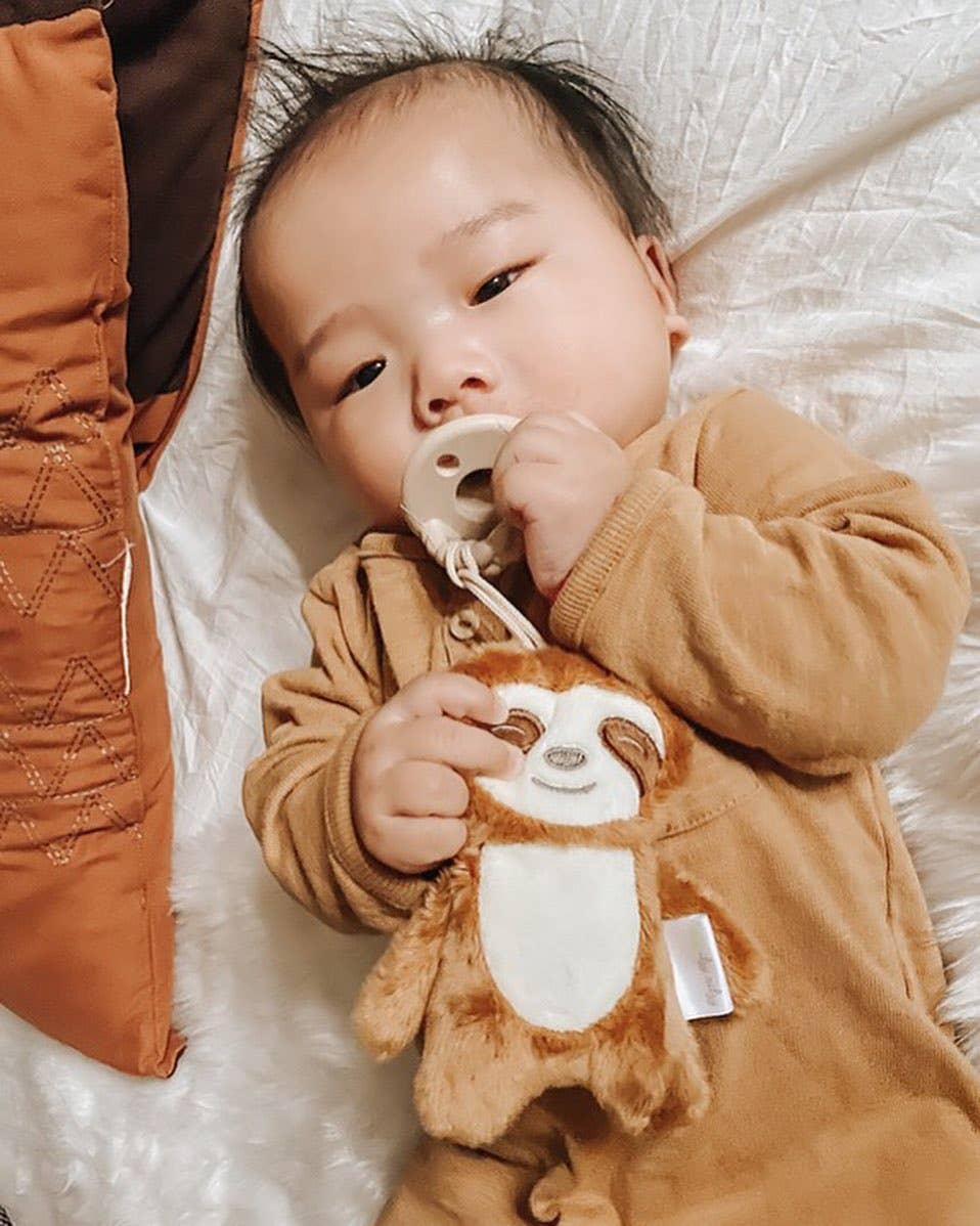 A sweet pal and pacifier all in one! The Sweetie Pal™ lovey attaches to our Sweetie Soother™ pacifier and is easy for baby to grasp while keeping the pacifier in place. The soft plush is detachable, machine washable and will become an instant BFF for your little one!