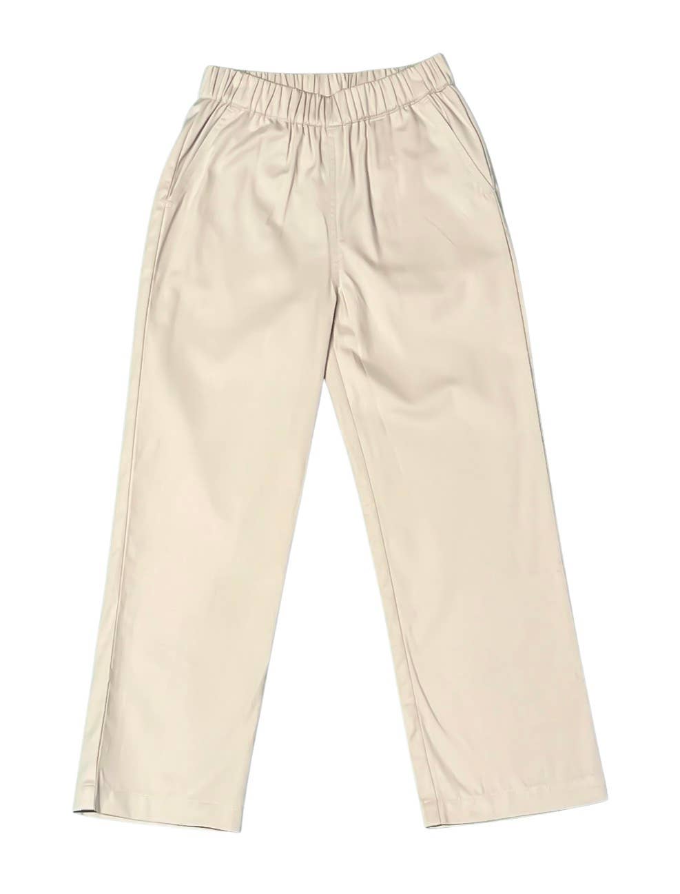 Cotton Twill with an elastic waist; embroidery on back right below waist band.