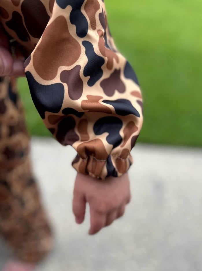 Designed exclusively by Southern Beaus Outfitters, the Aim True Field Suit features our signature camo pattern, a soft interior lining for comfort, and a water-resistant shell that keeps up with every adventure.