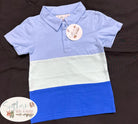 Upgrade your summer style with this playful polo, featuring a cool blue color block design. Made with a comfy knit fabric, this polo is sure to keep you looking and feeling cool. No need to feel blue in this must-have summer piece!