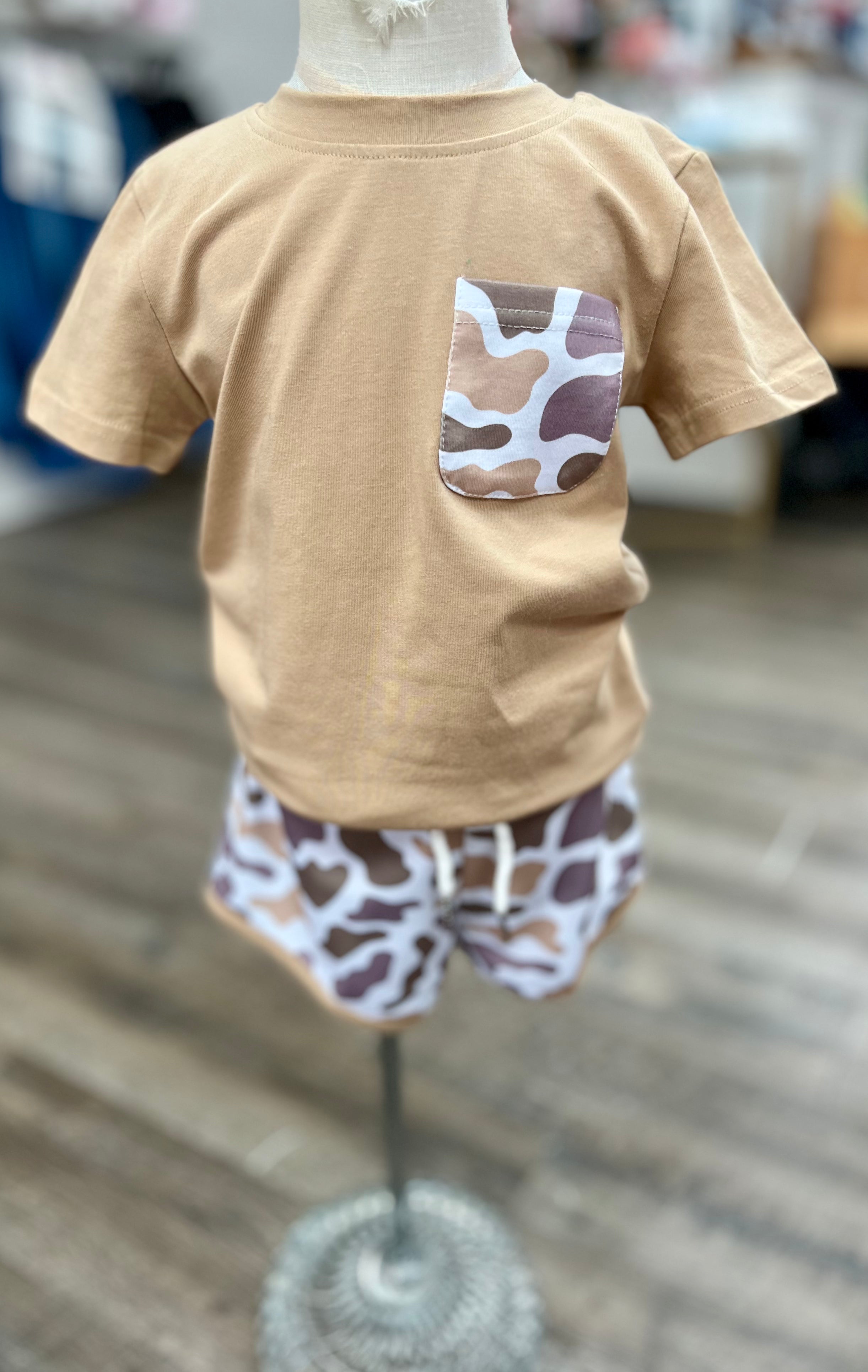 Whether he's chasing fireflies at dusk or riding shotgun to the feed store, this set is made for your rough-and-tough little gentleman. Featuring a soft, breathable camo top and coordinating shorts with southern charm, it's comfy enough for play and handsome enough for Sunday dinner and MiMi's. Rooted in Carolina pride and country grit-this outfit's ready for wherever the dirt road leads.