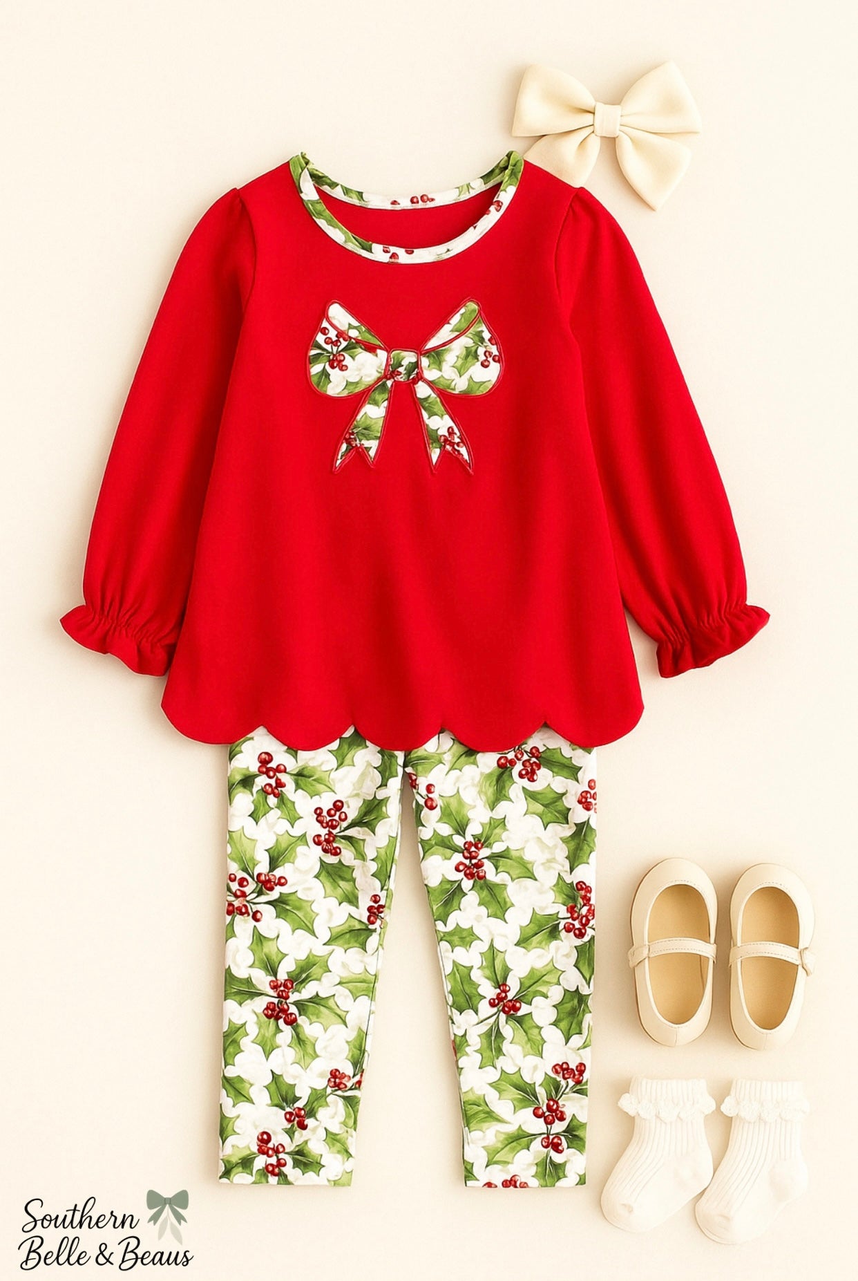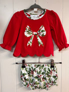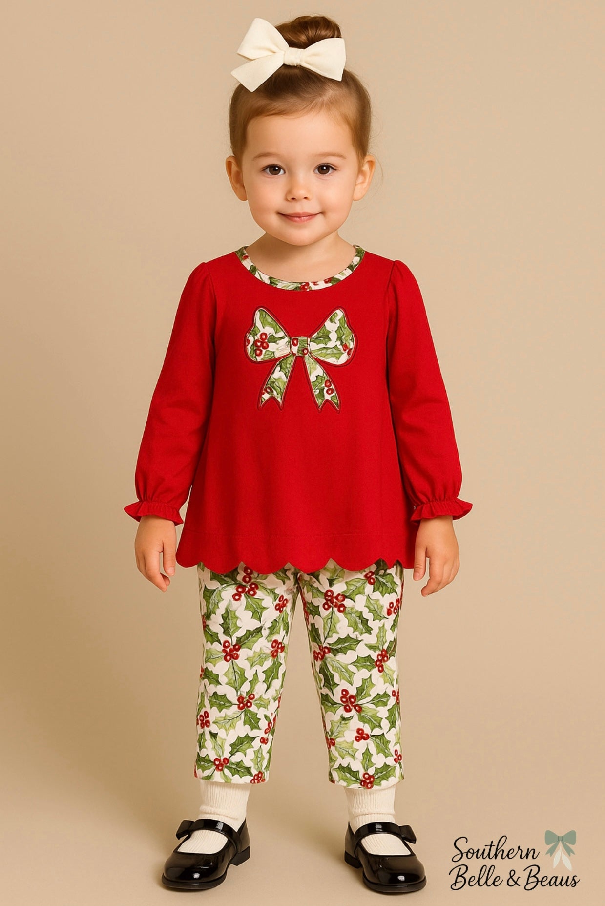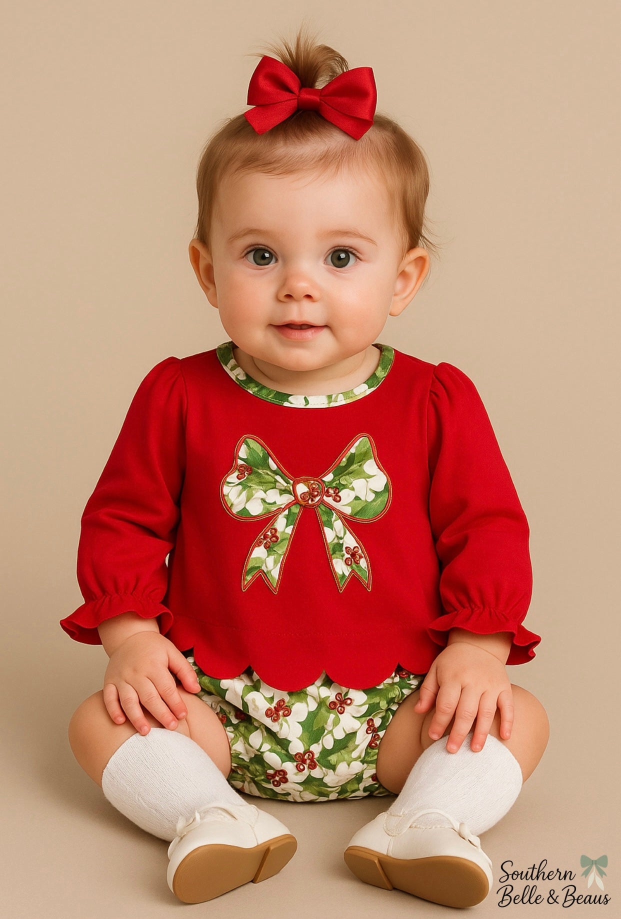 With bold red bows, festive holly berry prints, and sweet sister match options, this outfit is made for twinkling lights, family photos, and holiday memories.