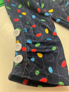 This darling two-piece features a bright green tunic with a festive Palmetto and Crescent design, paired with navy leggings strung with colorful Christmas lights. Cozy, soft, and full of holiday cheer — perfect for tree lightings, Christmas parades, and family photos.