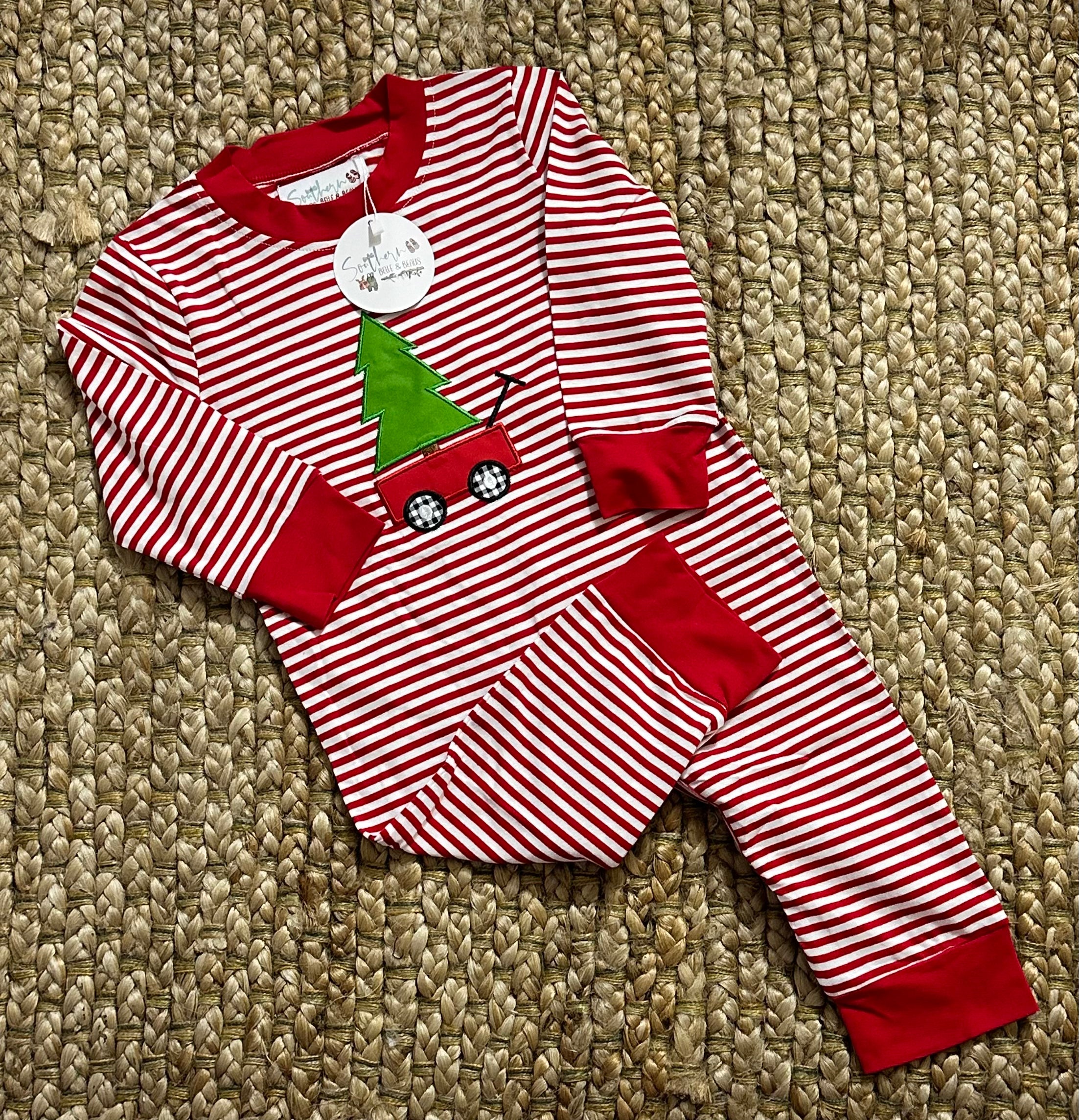 Get your little one ready for the holiday season with our Little Red Wagon Boy Romper! Made of soft and cozy knit fabric, this romper features red and white stripes and a festive red wagon applique with a Christmas tree. Perfect for spreading holiday cheer and making memories!