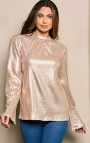 Experience a dazzling look with our Rose Gold Bell Sleeve Sequins Blouse! Adorned with gorgeous metallic rose gold sequins, this blouse will help you shine all night long. With its flattering bell sleeves, you'll be sure to make a stylish statement. Get ready to stun in this unique piece!