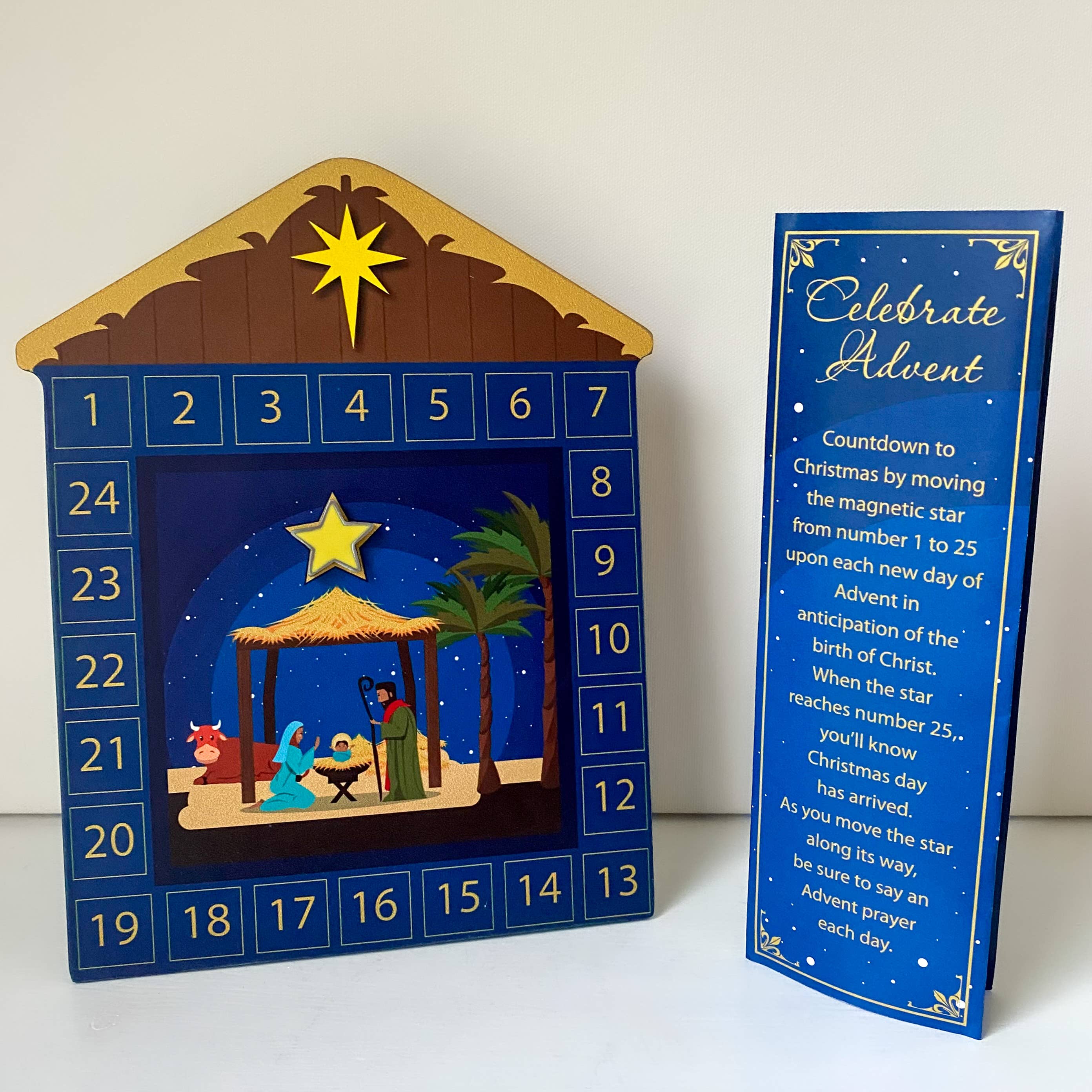 Children's advent calendar, booklet w/activities & prayers for each day as you move the magnetic star towards christmas, gift boxed.
