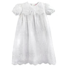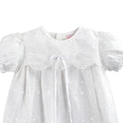 Our beautiful white eyelet lace dress with scallop embroidered hem edge and yoke is feminine and sweet and makes a perfect baptism or christening outfit for baby girls.