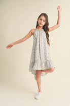 KIDS EASTER VALENTINE HALTER FLOUNCE DRESS A-line silhouette- fitted at the top and gradually widens towards the hem, creating a flared and flowy shape. This design is flattering and comfortable for various body types. The combination of the halter neckline and flounce detailing gives the dress a youthful and playful aesthetic.