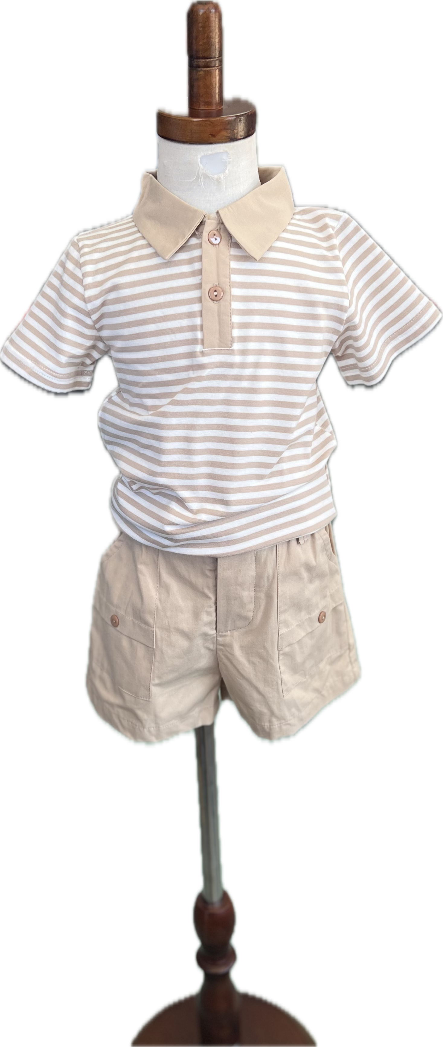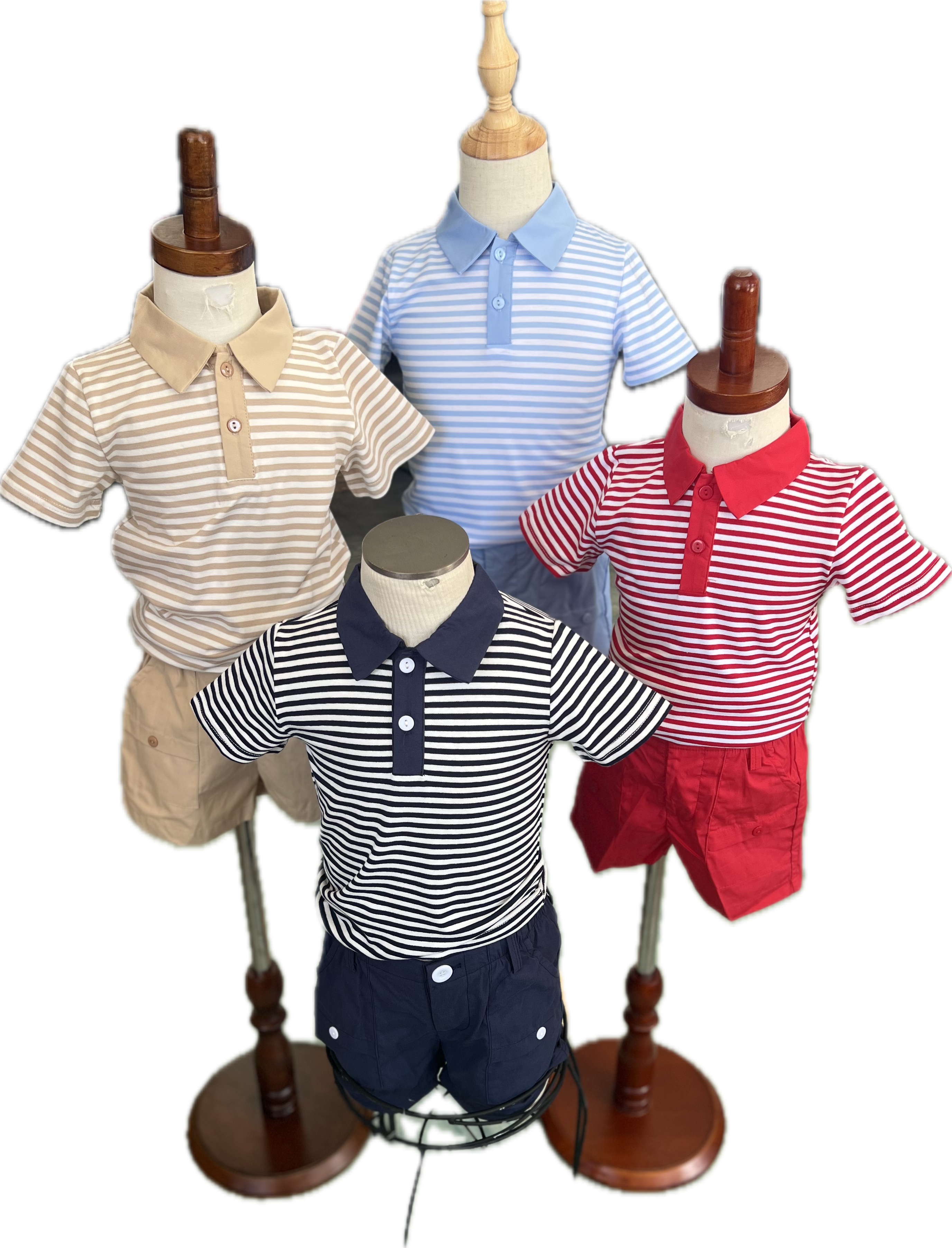 Classic charm made tiny—our Little Mister Collection is just right for your dapper little guys! This sweet and stylish set includes a soft striped polo and coordinating pocket shorts, perfect for church, school, or family outings.