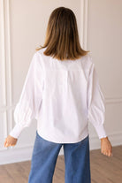 Retro Reverie Balloon-Sleeve Blouse in White: White / Large