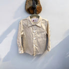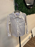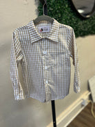 For the boys, a handsome khaki and white check woven button down top. Perfect for the season!