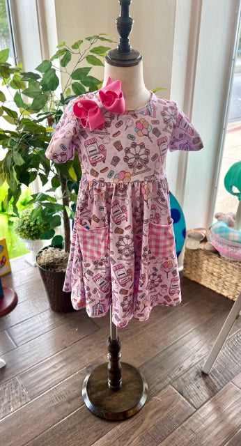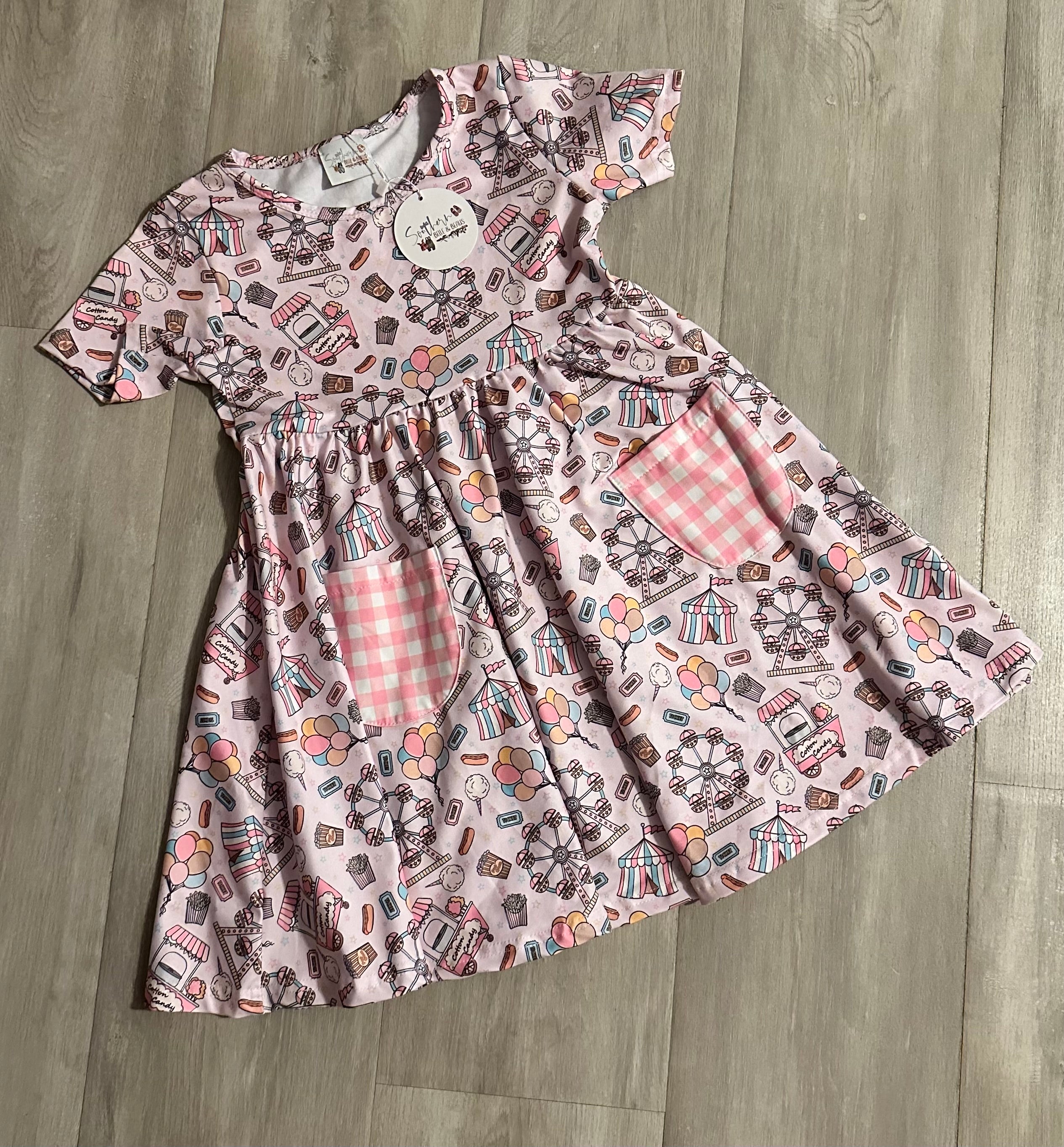 Get ready to twirl in our Take Me To The Carnival Dress! The fun blush carnival print and soft, plush material will make you feel like you're right at the fair. With this dress, every day will feel like fair time! Don't miss out on your chance to own this must-have twirl dress.