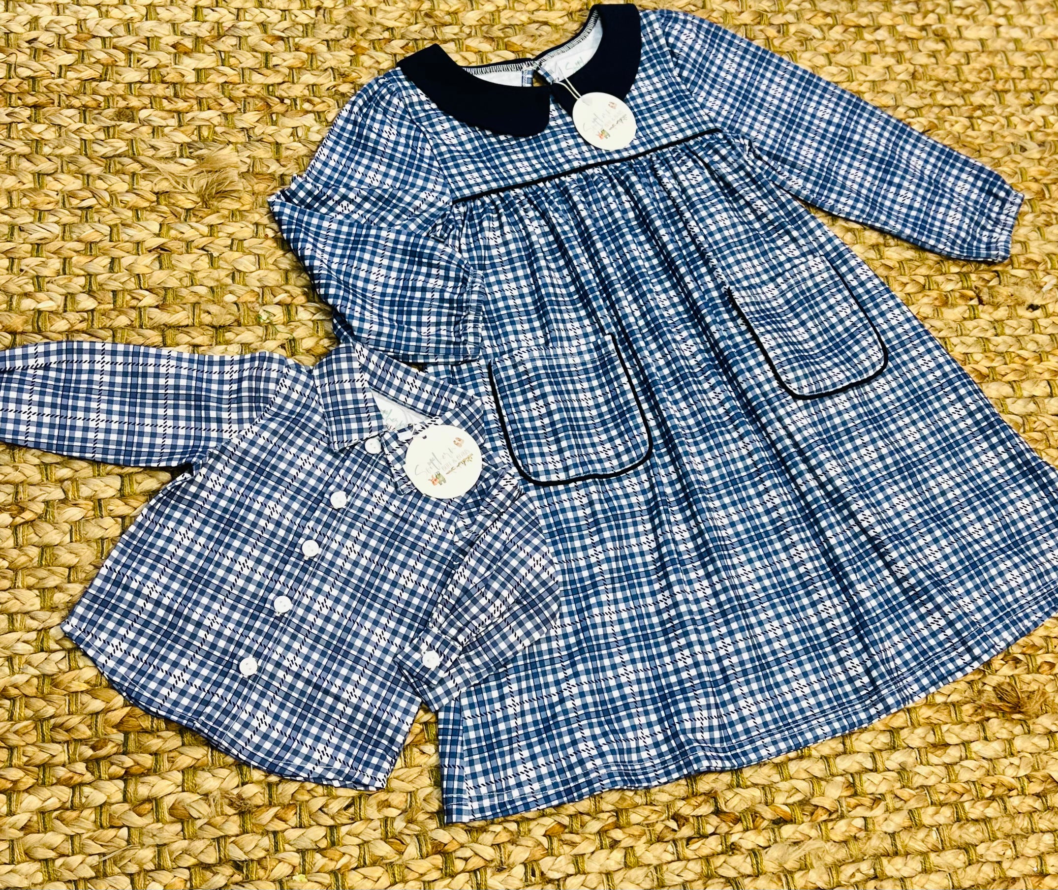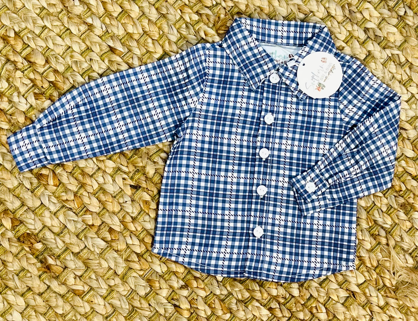 Introducing the Skylar Raynne Button Down - the perfect combination of style and comfort. Made with a woven fabric, this boys' shirt features a classic button-down collar and stylish button sleeves. The blue and white plaid pattern is accented with a unique broken rope design in a darker blue, making this shirt a standout piece in any wardrobe.