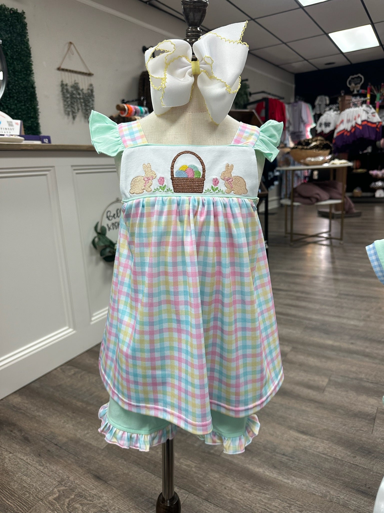 We chose this set because it captures everything we love about Easter dressing—sweet, timeless, and totally wearable. The pastel plaid and Easter basket detail feel fresh and classic at the same time, and we know from experience that girls need outfits that look great in photos but don't slow them down. This one checks all the boxes.