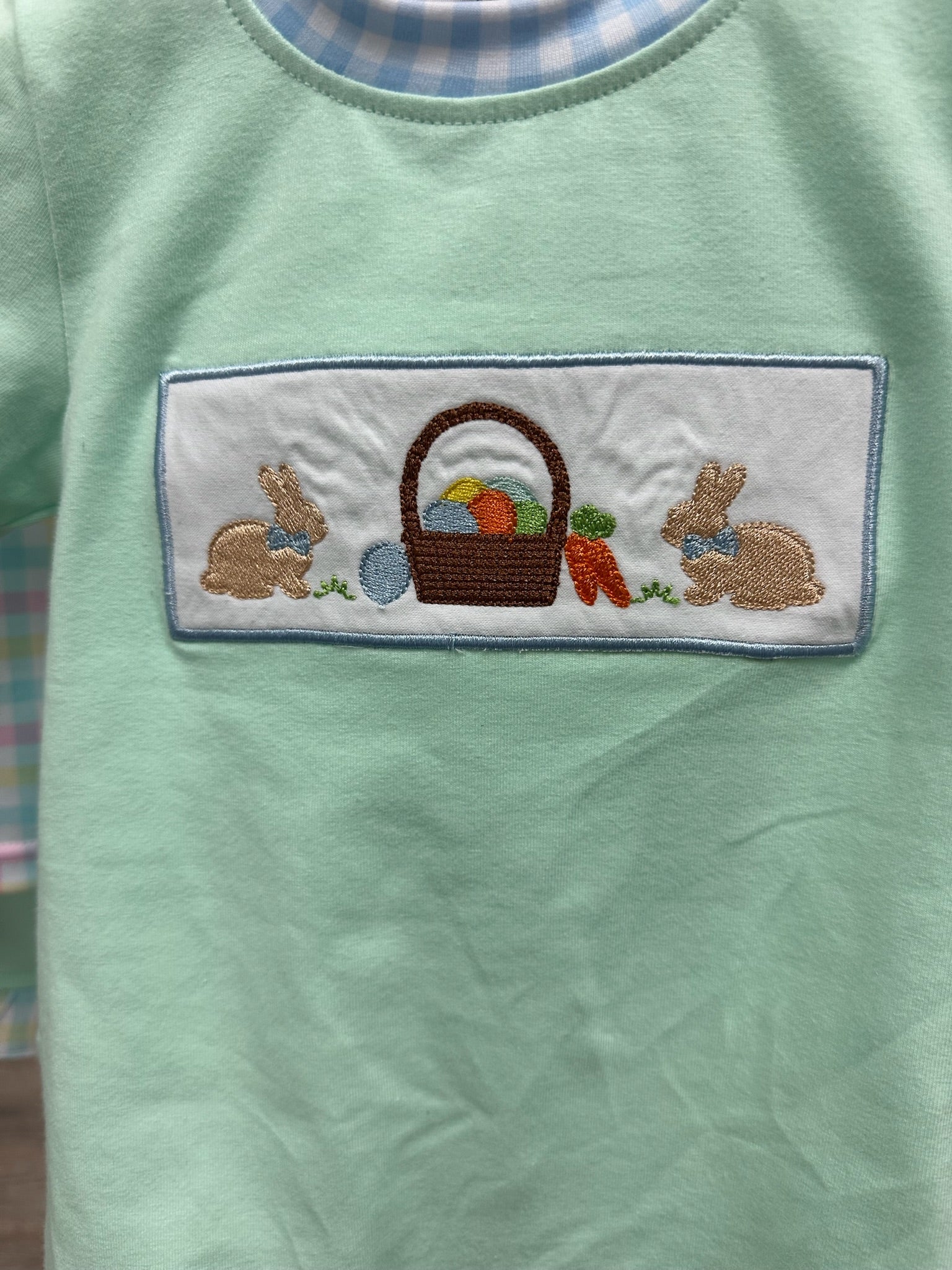 • Charming Easter appliqué features a basket with sweet bunnies for a festive, seasonal touch