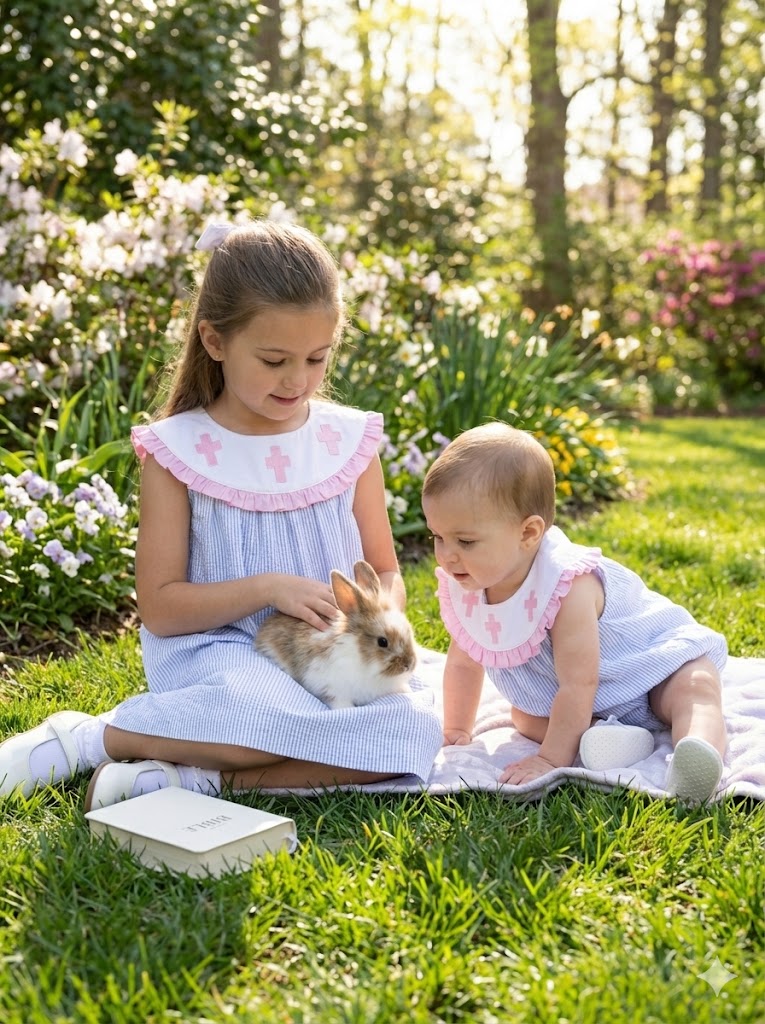 Yes! This dress coordinates beautifully with the Little Disciple Short Set for boys and Bubble Romper for babies, making it perfect for sibling photos and matching Easter outfits.