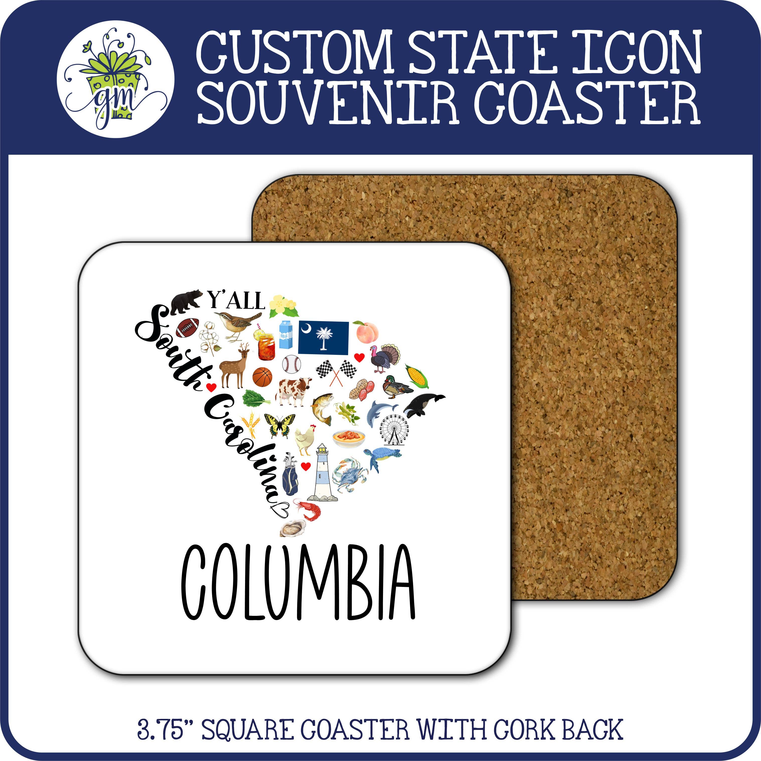 CUSTOM State Icons & Town Souvenir Gift Coaster: South Carolina / Square