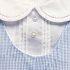 An heirloom quality French sewn romper with hand embroidery and delicate hand bridging stitch, this outfit is sure to become a treasured keepsake.