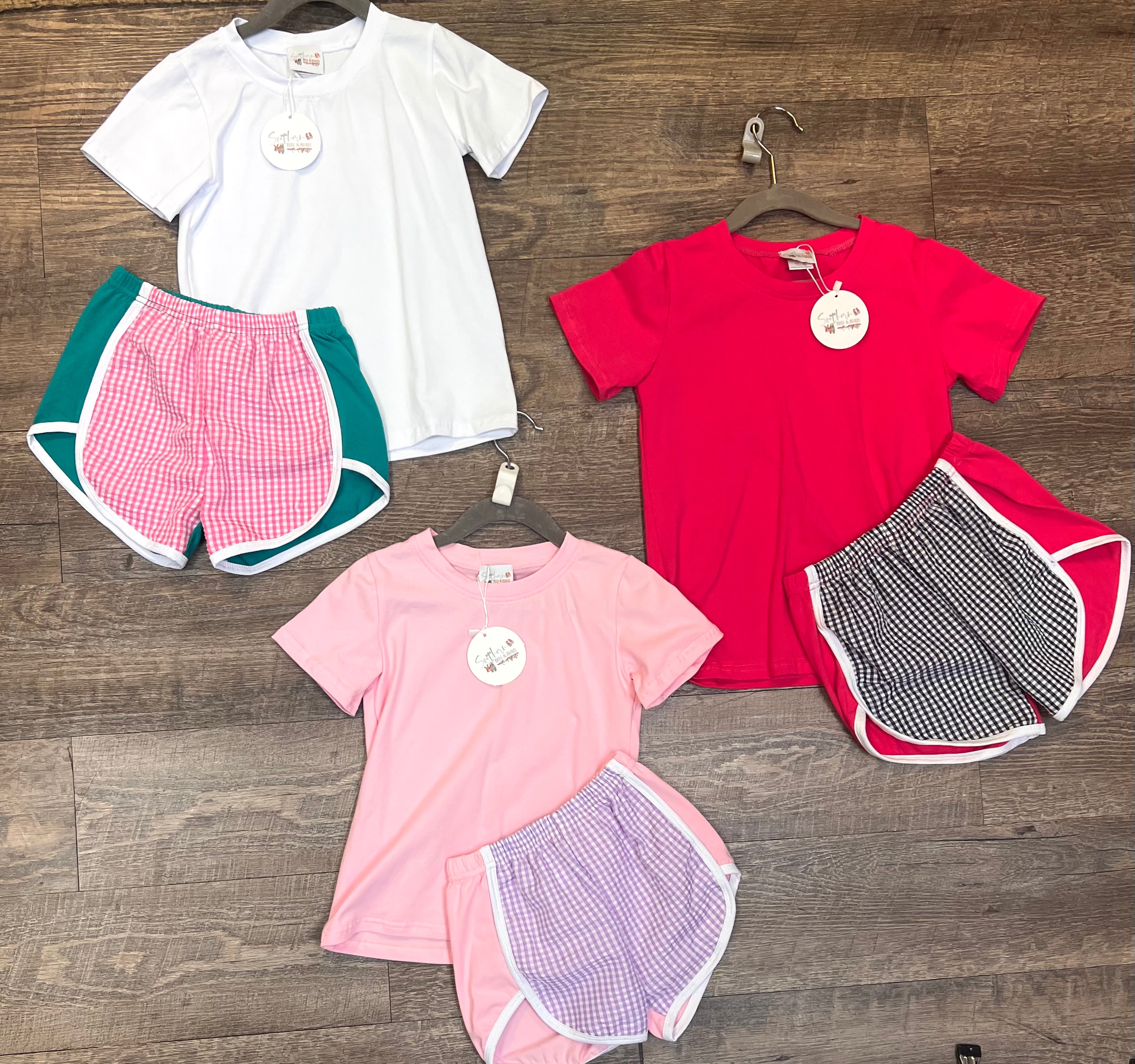 Effortlessly stylish and comfortable, our Casual Summer Sets are perfect for your little girl! Featuring a plain knit colored top and gingham shorts, these sets are the perfect choice for summer. Easy to wear and full of charm, your little one will love these outfits!