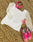 "Add a touch of lace to your outfit with our girls' long sleeve lined undershirt. Perfect for layering or wearing on its own, this lace shirt adds the perfect touch of feminine charm to any look. Comfortable and stylish. (Lace not just for doilies anymore!)"