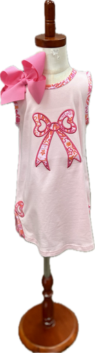 This sleeveless pink dress brings on all the charm with vibrant bow appliqués and contrast trim! Lightweight, soft, and ready for summer strolls, beach portraits, and twirling around the front porch.