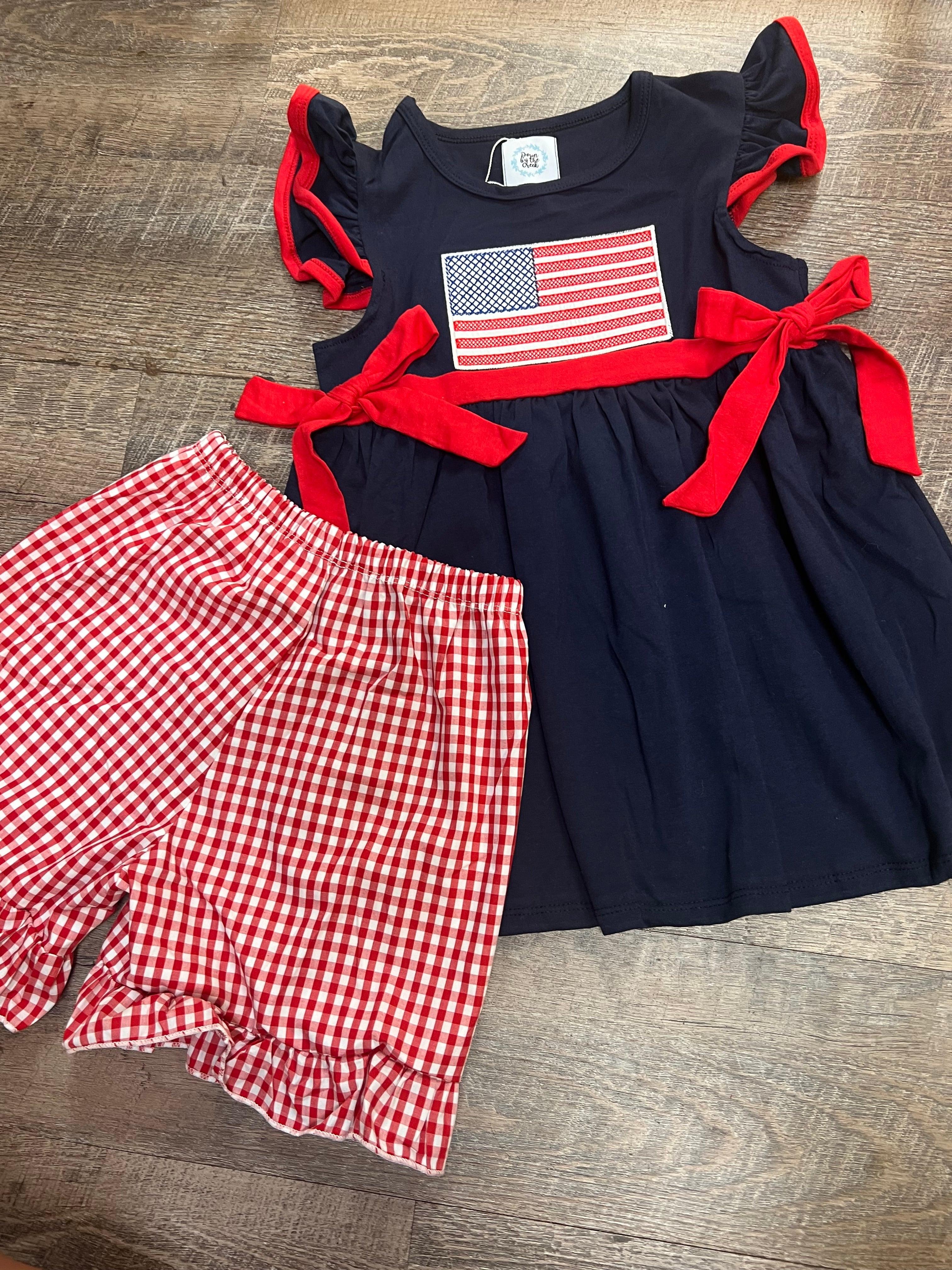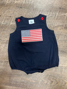 Wave your patriotic pride in style with our Old Glory summer sets! Made with a cozy navy knit and adorned with an American flag applique, this set is perfect for siblings to match and celebrate the season. Who says you can't look cool while showing off your love for the USA?!