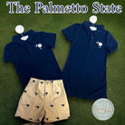 Dress to impress with our Palmetto State Polo Dress! This navy knit dress features a crisp white monogram of the iconic palmetto tree and crescent. Perfect for summer days, golf outings, or casual events. Represent the preppy and stylish South Carolina lifestyle in this must-have dress for girls.