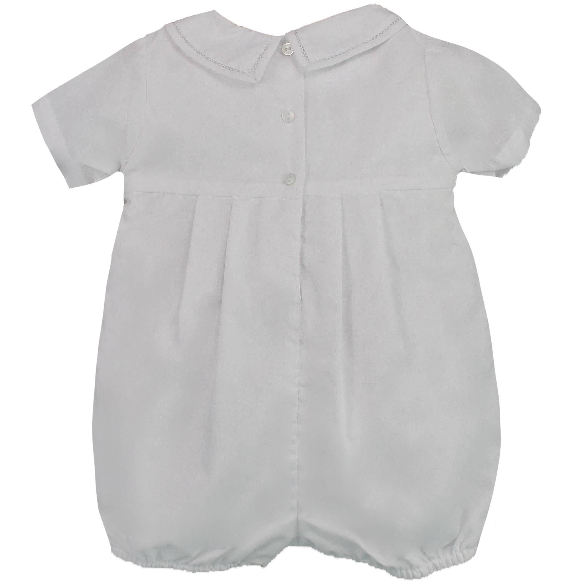 Baby Boys' Diamond Smocked Romper – Heirloom White with Matching Hat