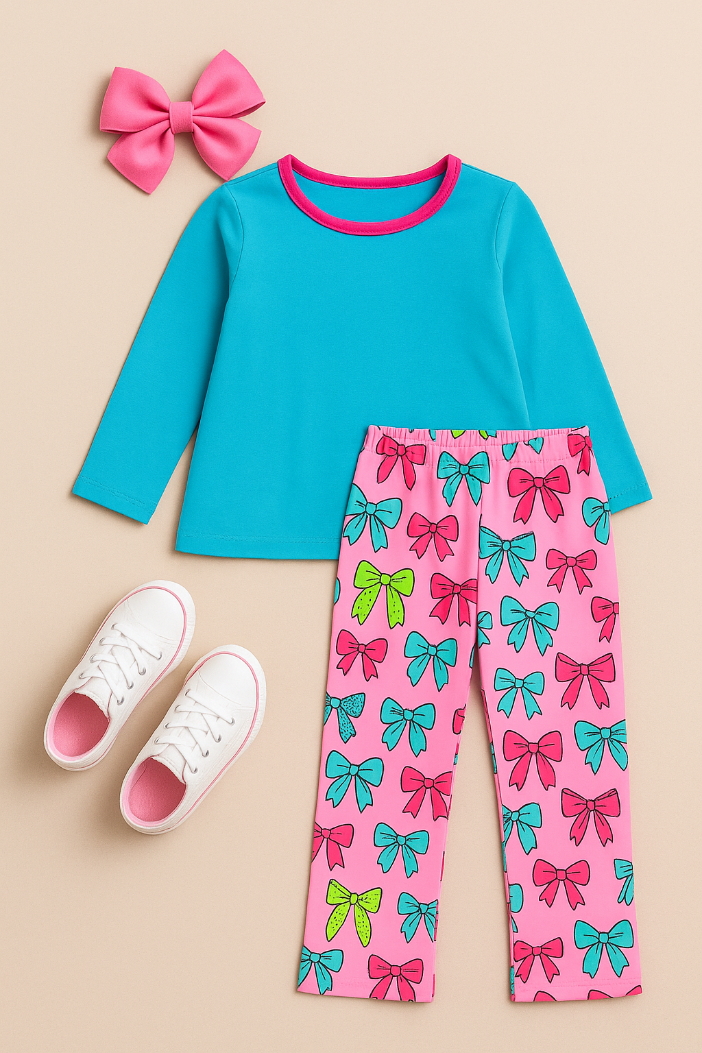 Meet the Bow & Go Set — the happiest little pop-of-color outfit for your bow-lovin’ girl!