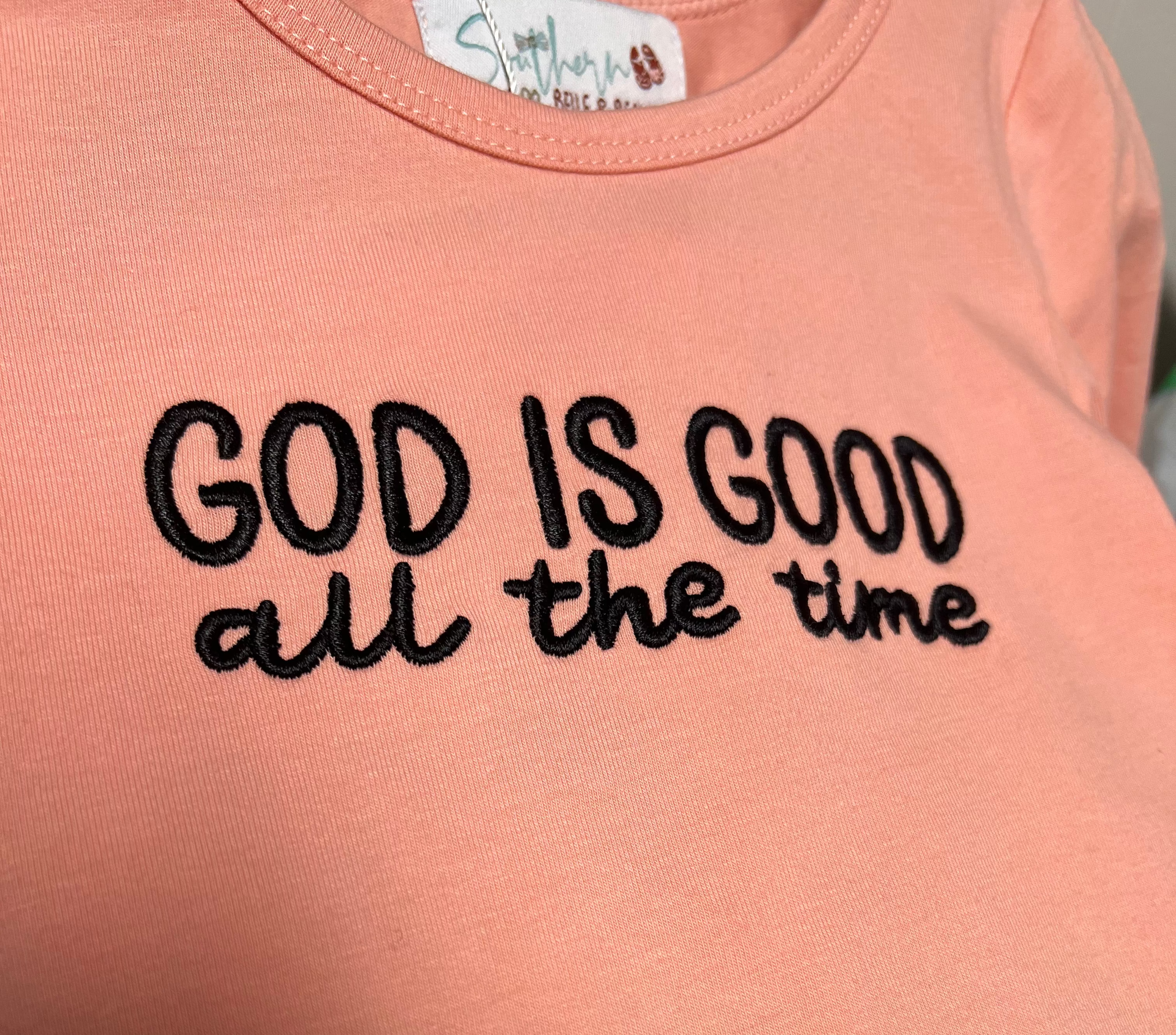 Embroidered God Is Good All the Time top