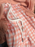 Peach gingham pants with ruffle pockets