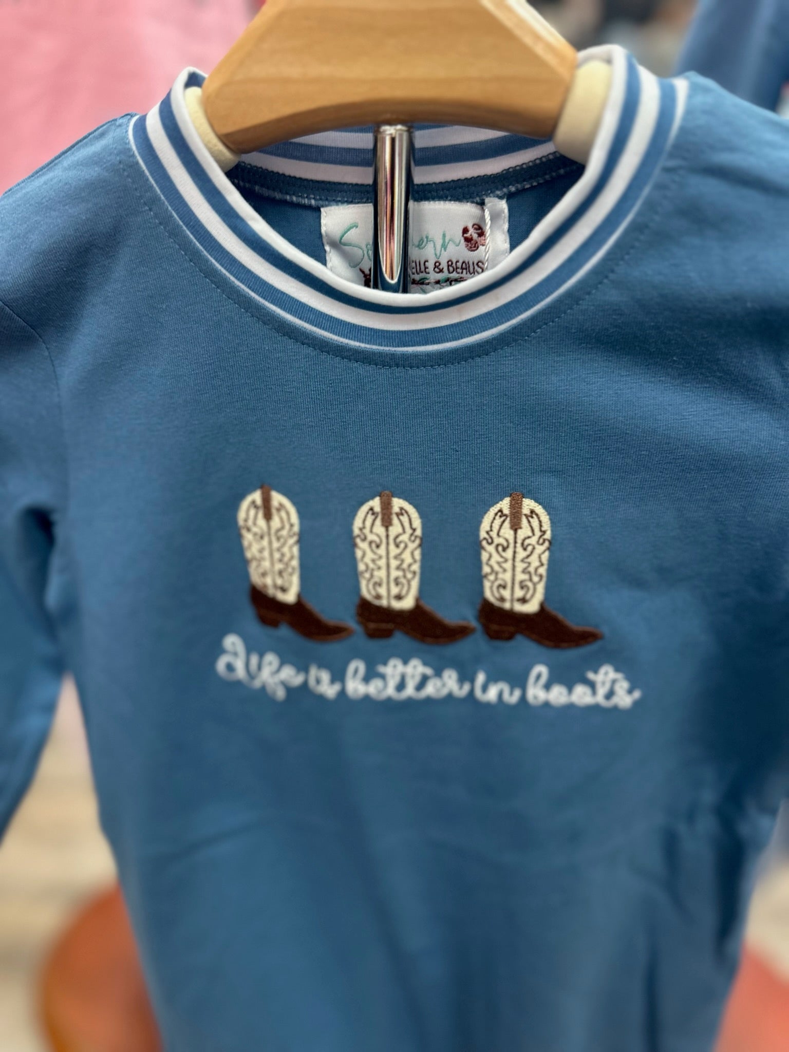 This is one of those pieces that checks all the boxes — comfortable, timeless, and full of Southern personality. It’s easy for parents and adorable on littles, which makes it a win every time.