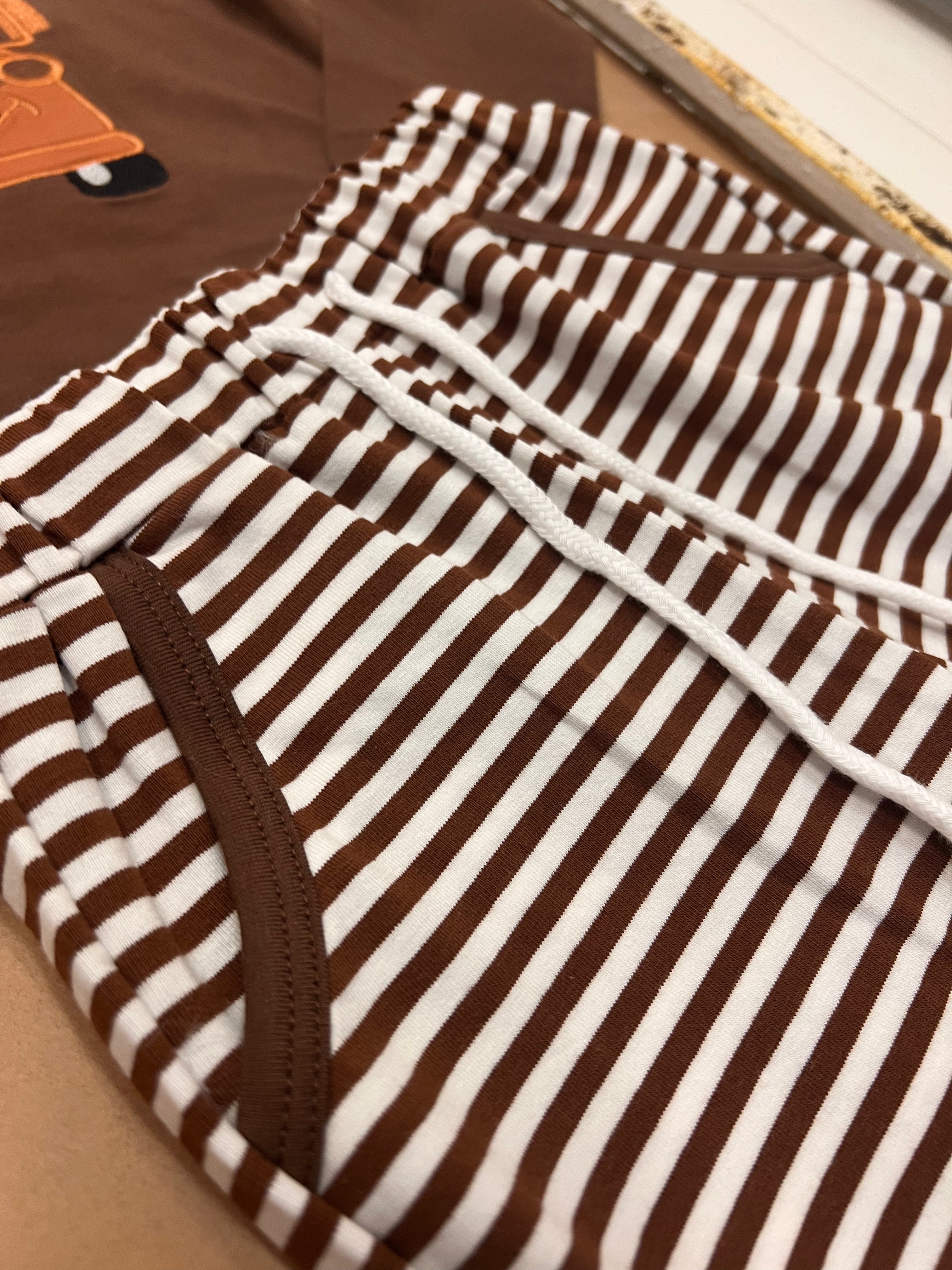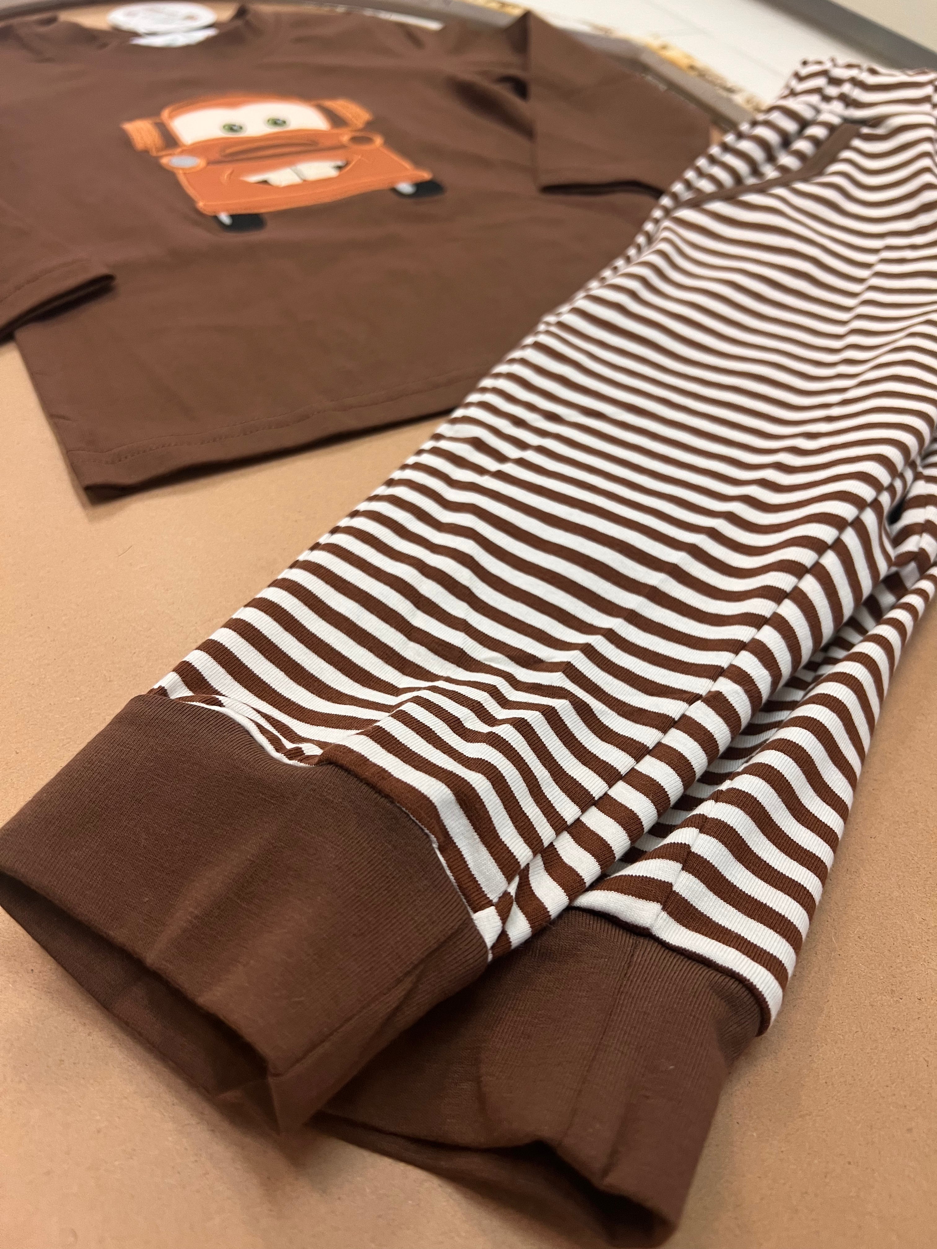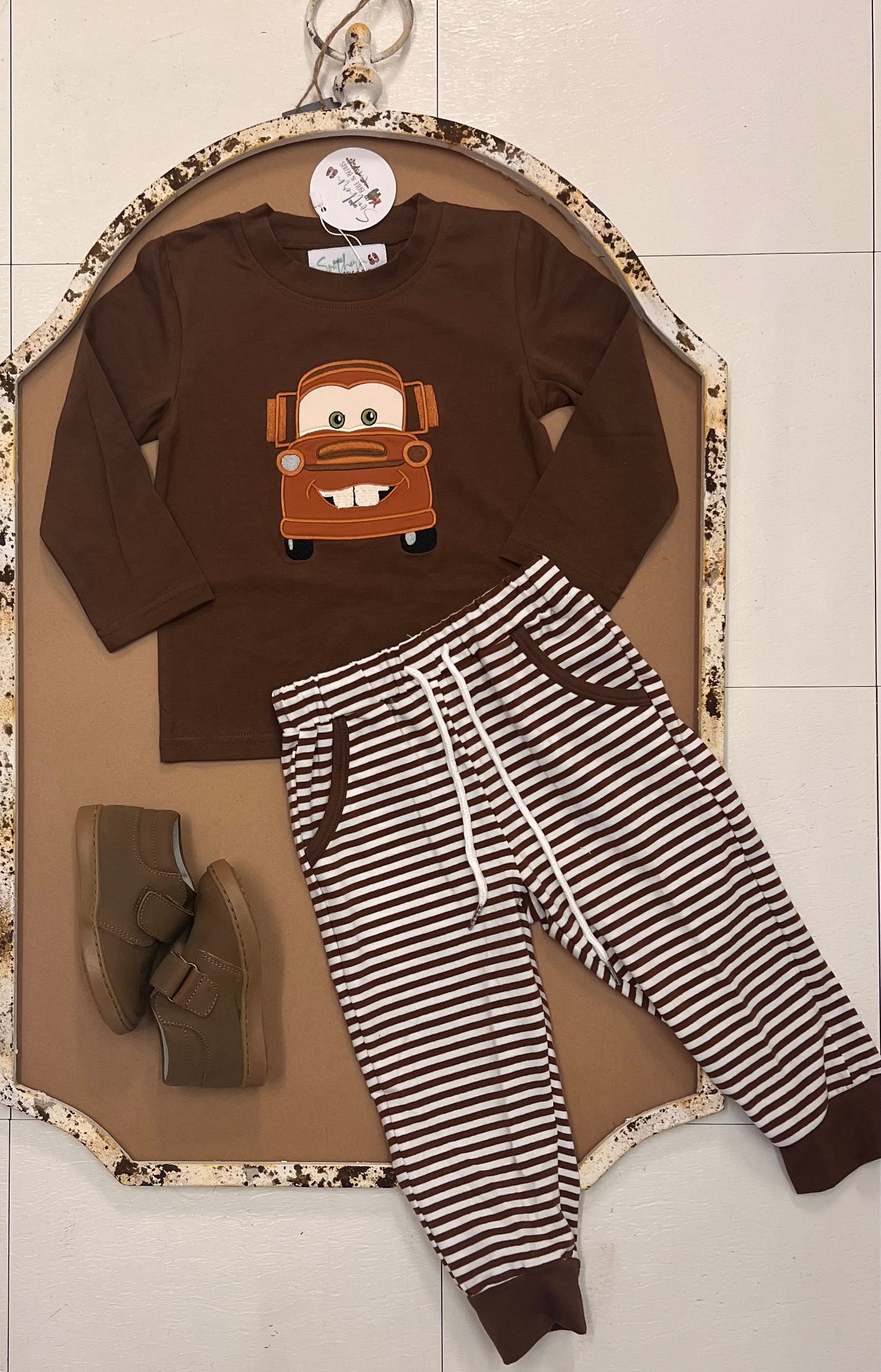 Your little guy will be ready to roll in the Mater on the Move Set! This precious two-piece outfit features a soft brown long-sleeve top with a cheerful tow truck applique and coordinating striped jogger pants with a comfy drawstring waist. Inspired by everyone’s favorite rusty but trusty truck, this set blends playful style with cozy comfort.