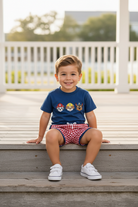 Are the shorts included? Yes! This is a complete two-piece set — the navy tee and gingham shorts are sold together.