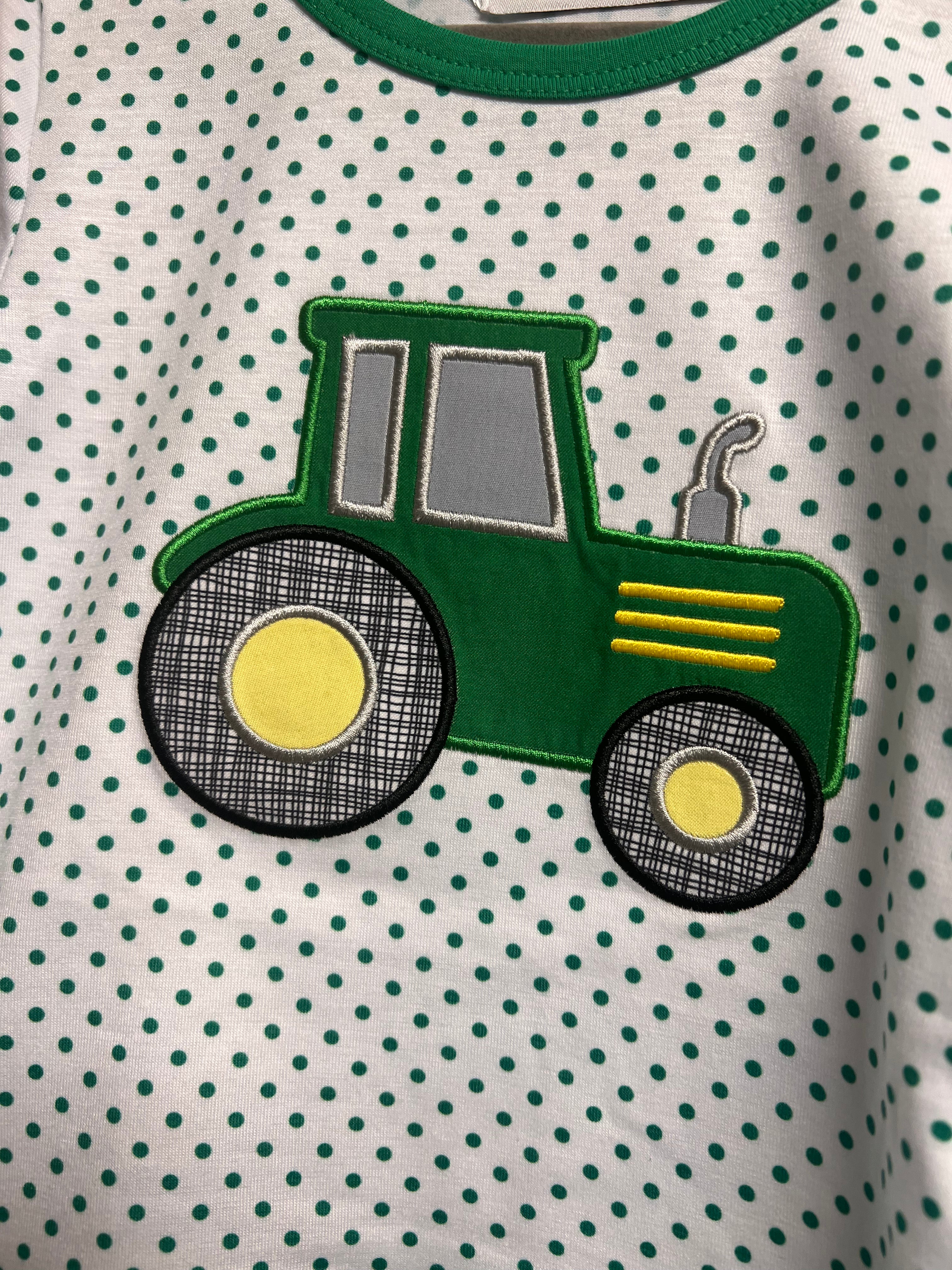 Fun green tractor applique