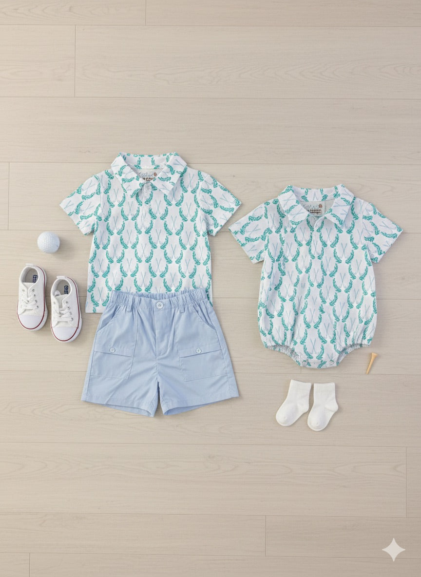 This set is perfect for our golf-loving families who want to celebrate The Masters in style! It captures that iconic tournament aesthetic while being practical for real life with active boys. The classic green photographs beautifully and works for so many spring occasions beyond just golf events. We love pieces that let families share their passions with their little ones while keeping comfort and quality front and center.
