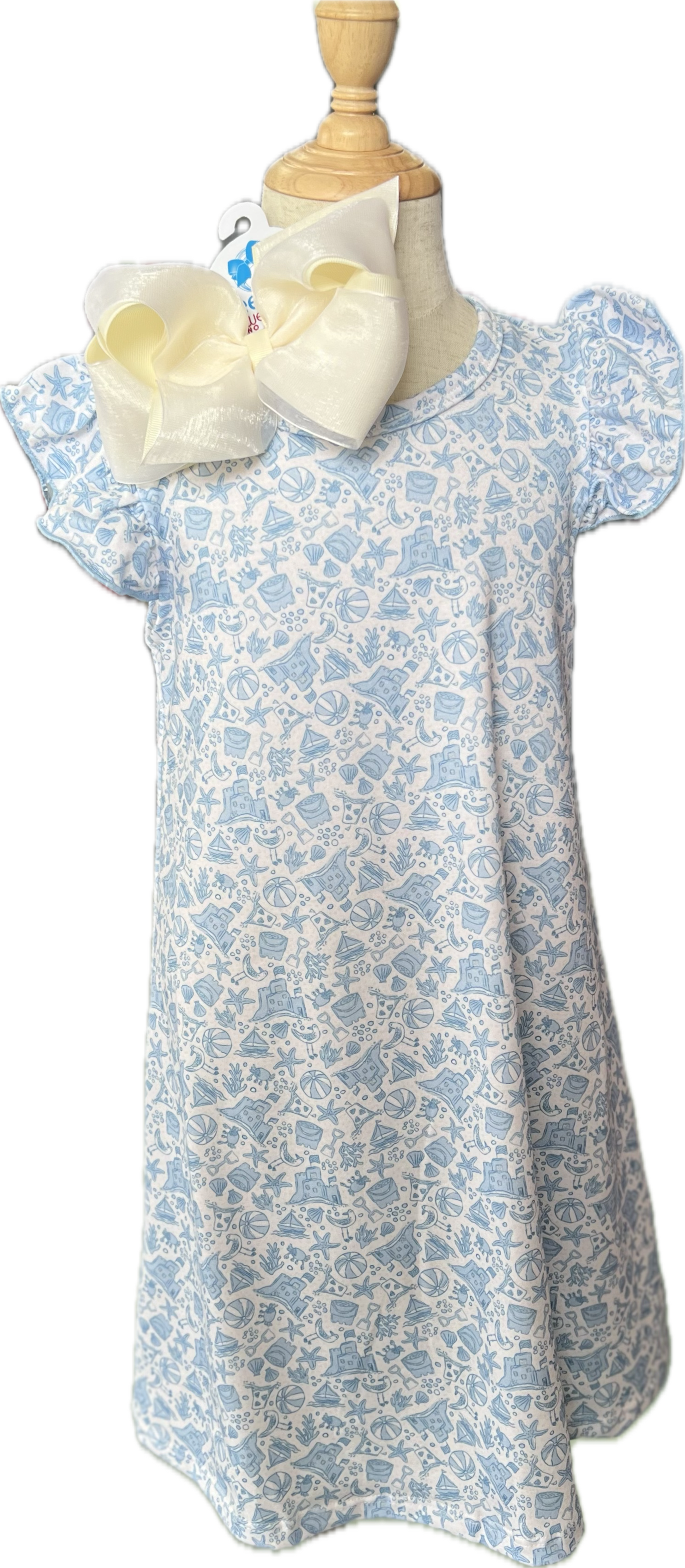For the girl who’s always chasing waves — this darling dress brings the coast to her closet. Featuring a custom seaside doodle print in calming blue, fluttery sleeves, and a relaxed fit she can twirl in all summer long.