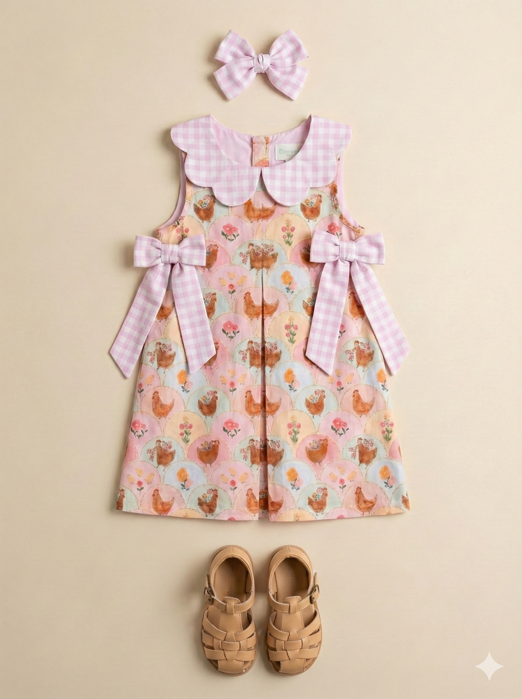 This dress captured our hearts the moment we saw it! The sweet chicken print brings that charming farmhouse feel we love, while the gingham bow details add just the right touch of Southern sweetness. As moms, we know how hard it is to find dresses that look boutique-beautiful but don't sacrifice comfort or durability—and this one checks all the boxes. We love that it coordinates with the baby bubble for sister photos, and the fact that little girls actually want to wear it (not just tolerate it for pictures!) makes it a winner in our book. Whether you're dressing up for Easter or just want her to look precious for everyday spring fun, this dress delivers style and comfort in equal measure.