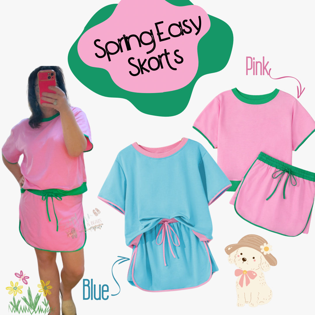Bright colors, bold trim, and all the comfy-cozy vibes — the Sweet & Sporty Collection is your go-to for playful style this season. Each set includes a short-sleeve crewneck tee and matching drawstring shorts made from soft stretch knit. Available in two fun colorways — Berry Breeze (pink/green) and Cotton Candy Chill (blue/pink) — these sets are made to mix, match, and move through summer with ease.