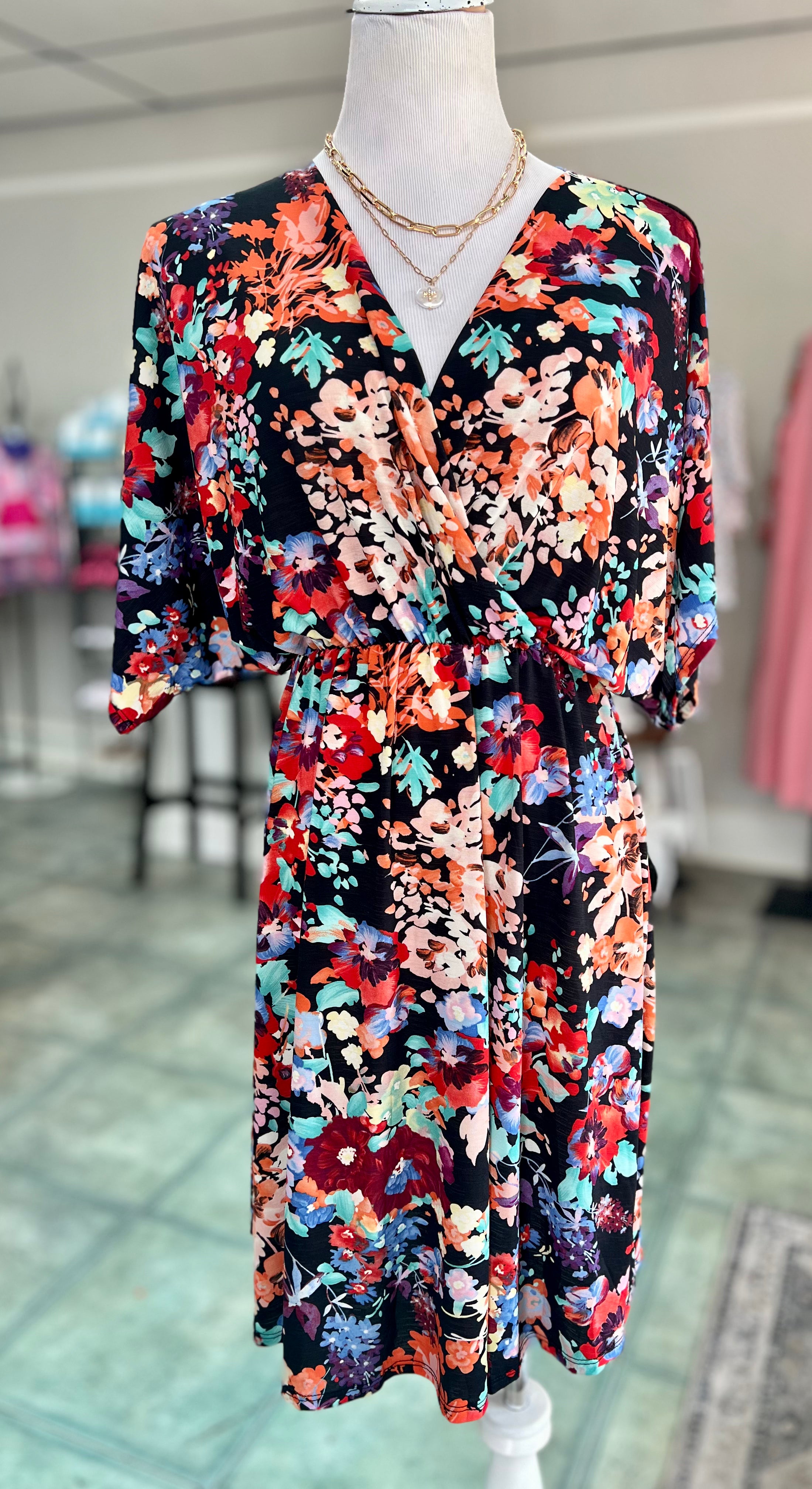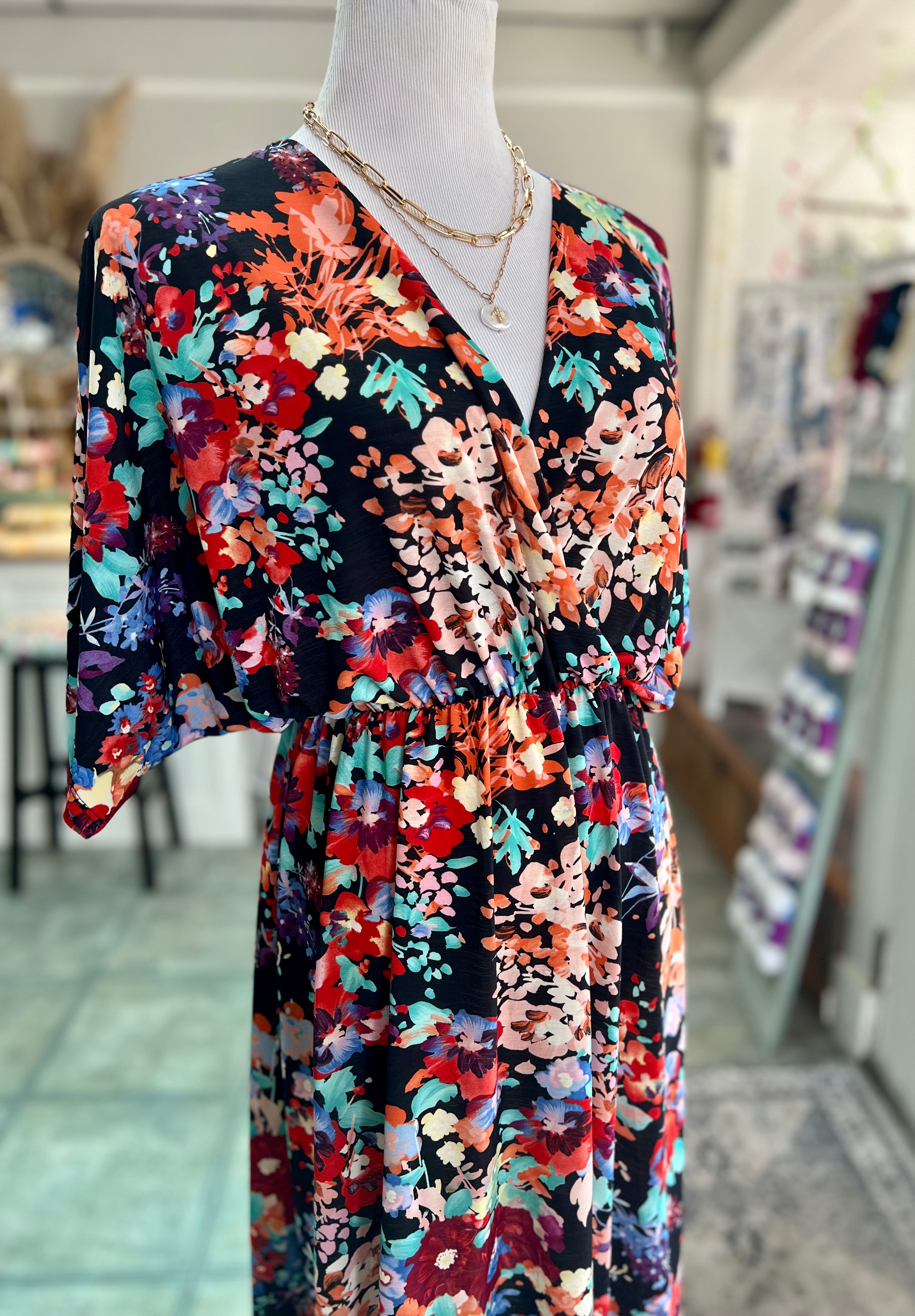 🪷This dress feels like a hidden treasure — soft, lightweight, and full of vibrant color. The Secret Garden Dress features a flattering wrap-style neckline, flutter sleeves, and an elastic waist that gives you the perfect shape without sacrificing comfort.