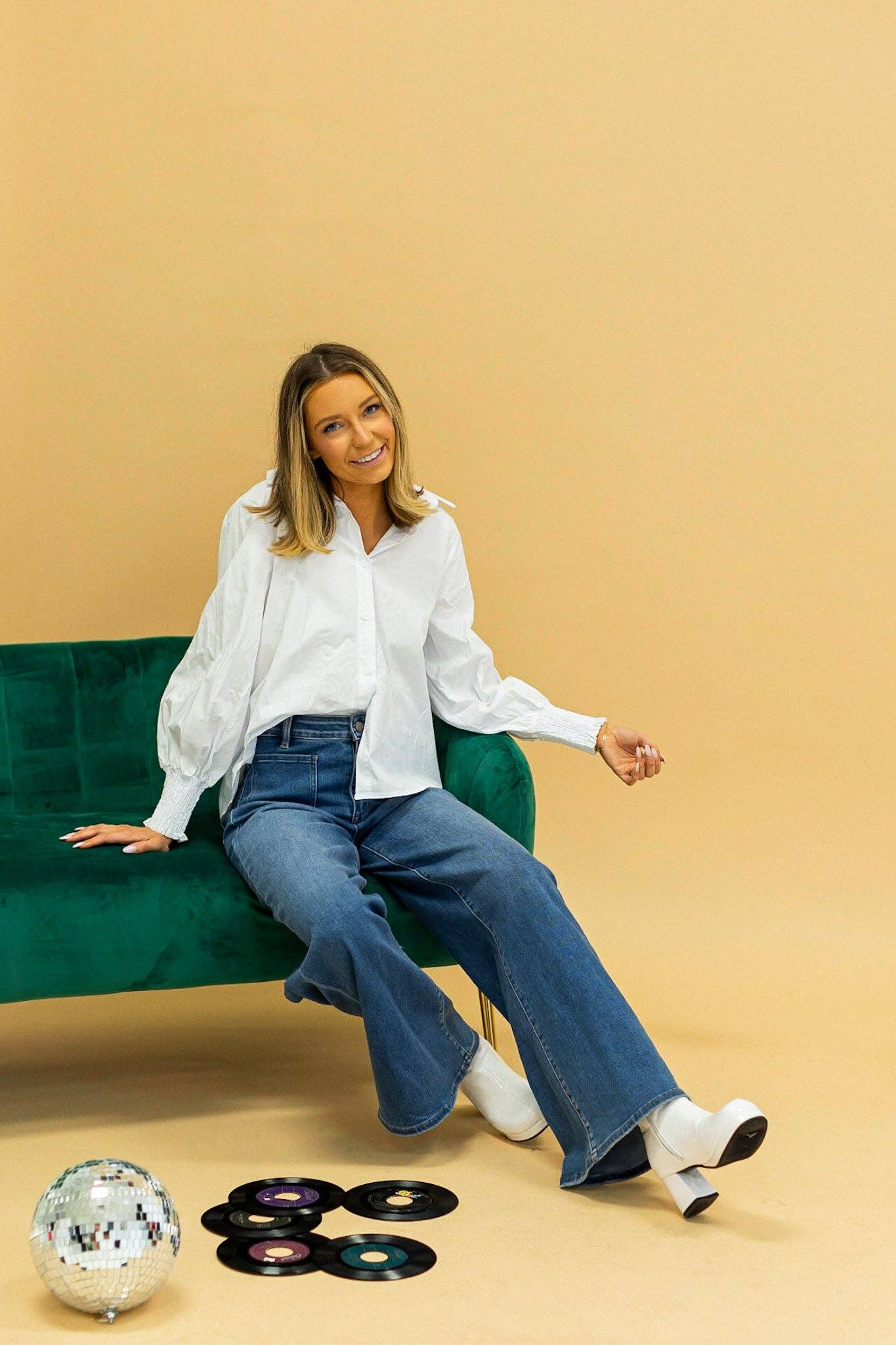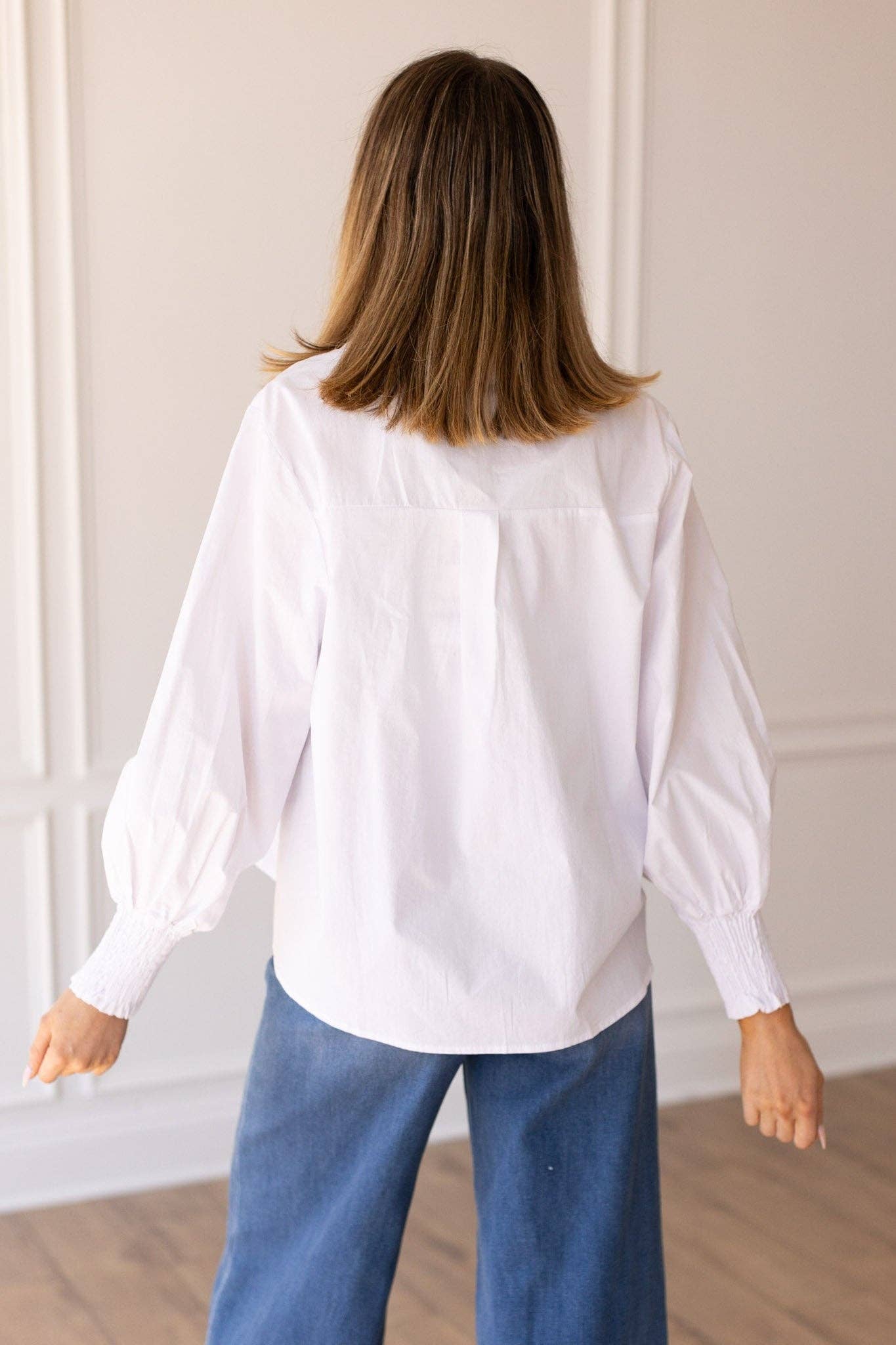 Retro Reverie Balloon-Sleeve Blouse in White: White / Small
