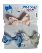 This gift pack comes with three tiny-size grosgrain hair bows for girls that can be swapped out on the included white add-a-bow band, allowing you to customize your look every day! The colors included in this pack are white, shocking pink, and pearl. The baby band fits sizes 3 months and up.