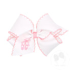 Sweet ballet slippers embroidered on this king hair bow are perfect for all our little ballerinas. This bow is sure to stay in her hair all day with our patented WeeStay™ no-slip hair clip.