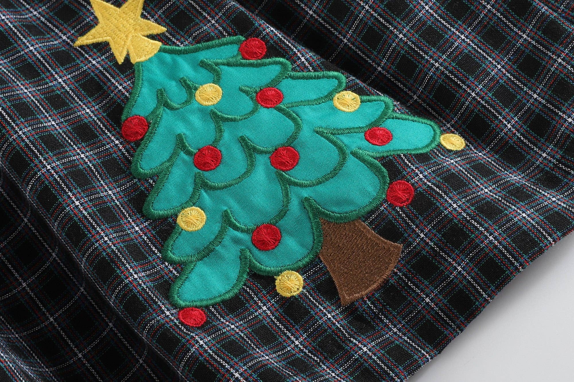 She'll be ready to jingle and mingle in style this holiday season with this black checkered Christmas Tree Dress! This precious little girl dress features a festive Christmas Tree applique and a pretty bow adds a pop of color. Perfect for a holiday party or family photo!