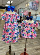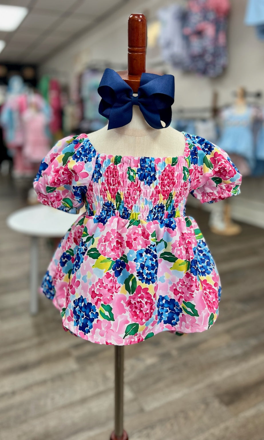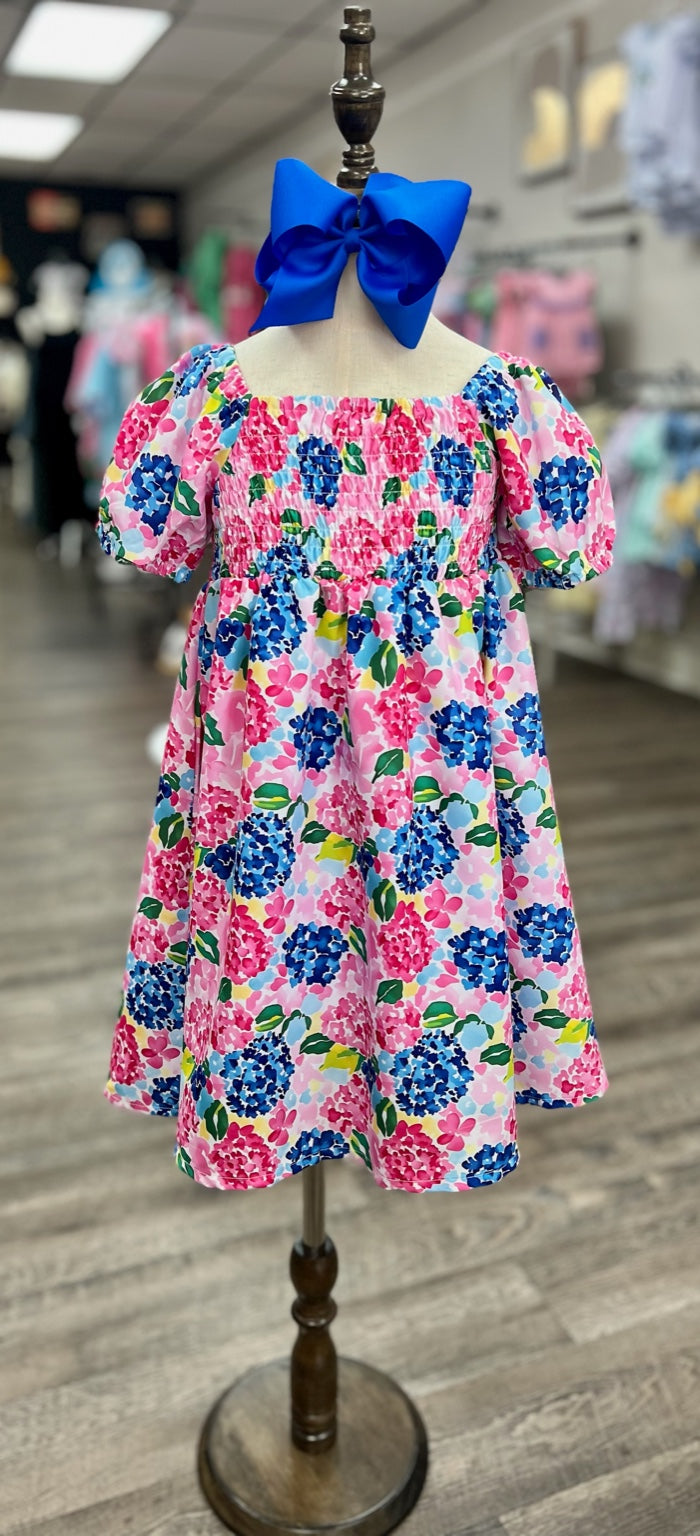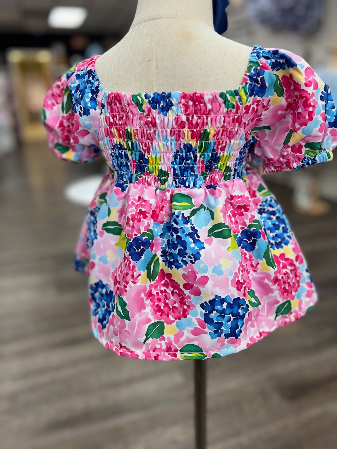 Bring the bold blooms this season in our Hydrangea Pop collection! 💕 Featuring a stunning pink, blue, and green floral print, this set is perfect for sisters to match and twirl in style.