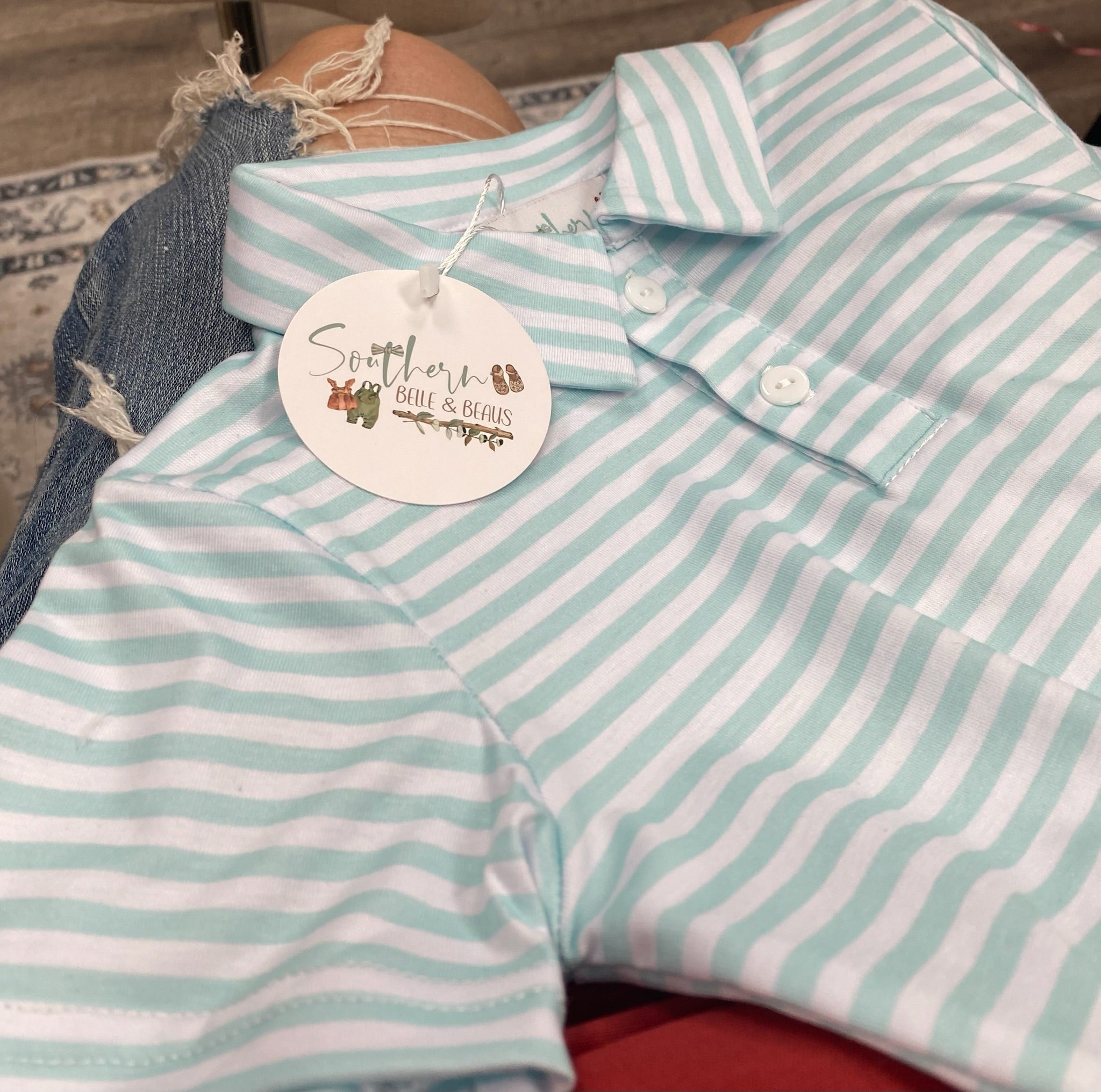 Classic, clean, & oh-so-handsome! This is a must have polo for your little gent this season. Featuring soft light blue and white stripes, this timeless polo brings effortless charm to everything from church Sundays to springtime family outings. Made with comfort in mind and tailored for that picture-perfect look.