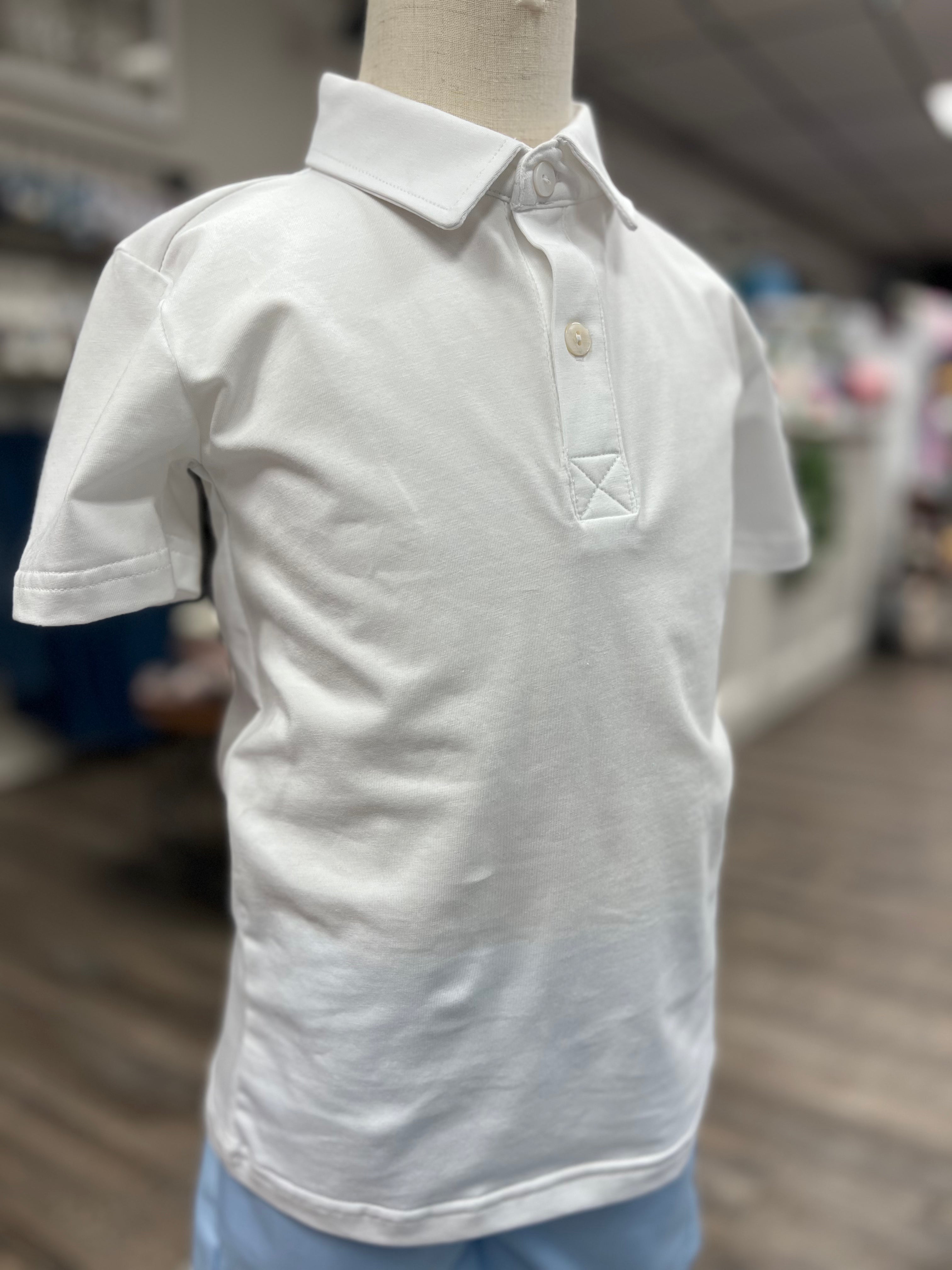• Heirloom-quality white polo with button details